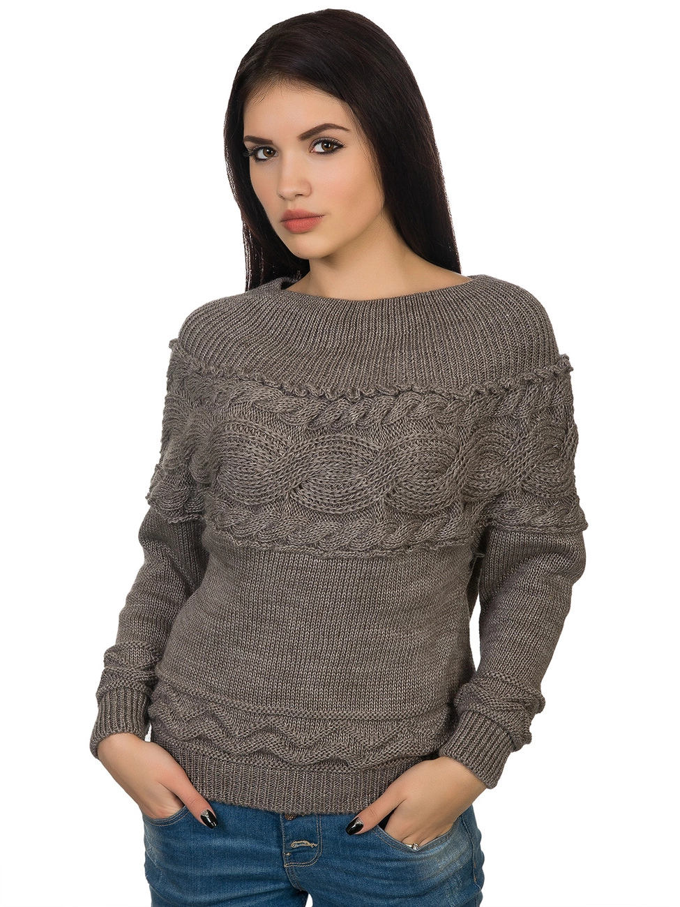 комфортной посадки. Пикантности джемперу придает широкая коса