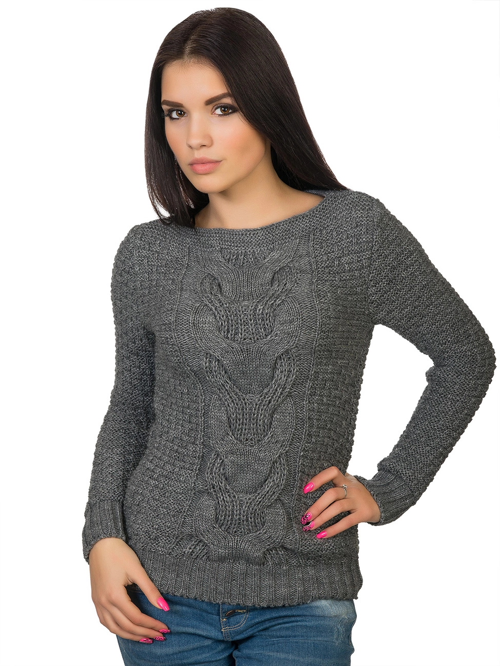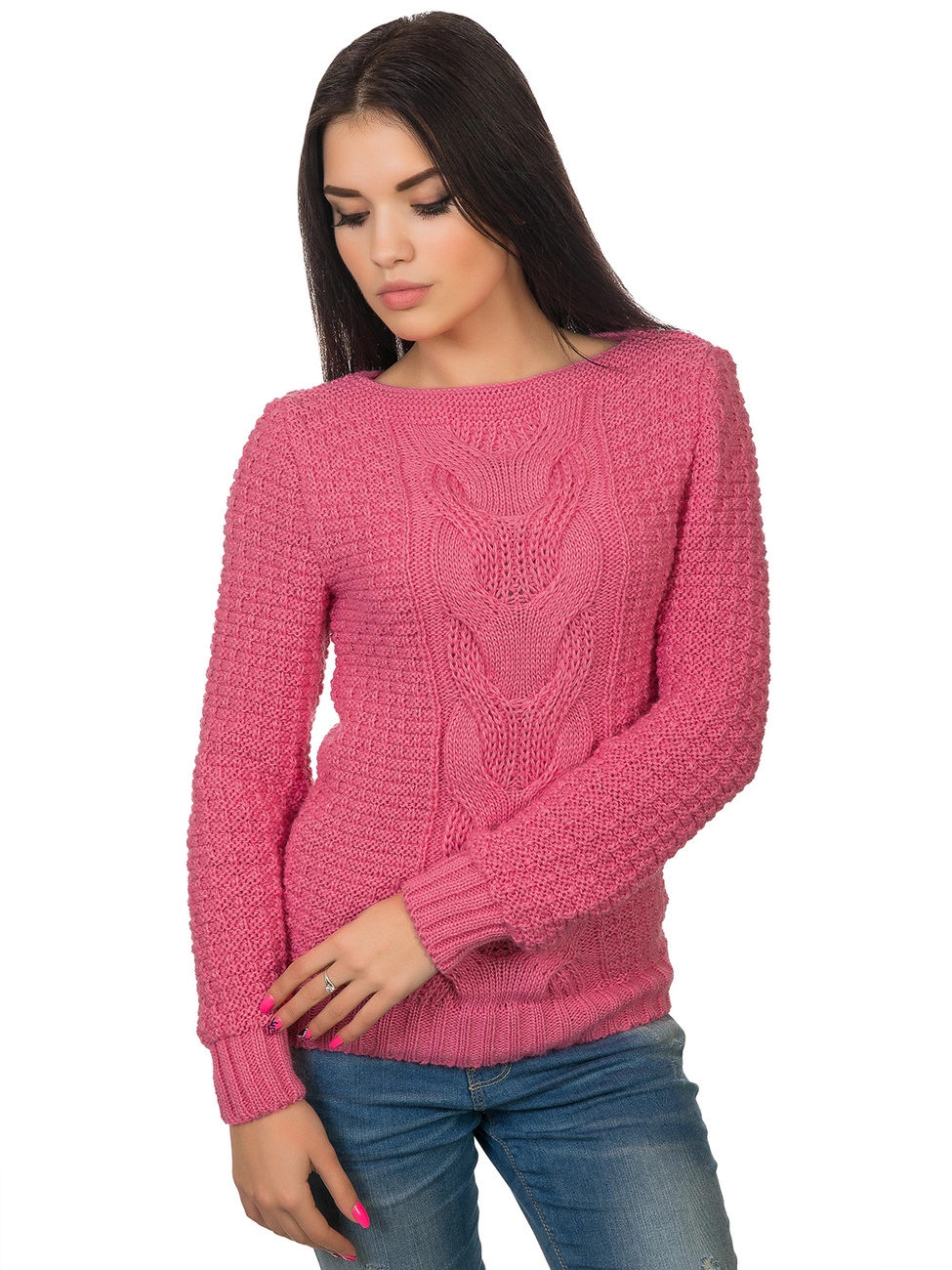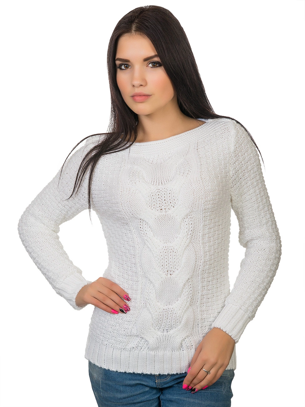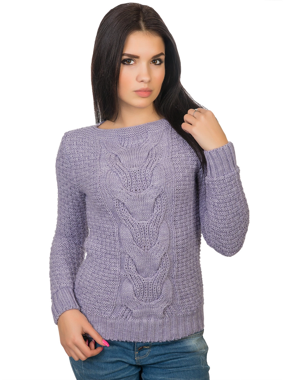 украшенный фигурной вязкой. Длинный рукав и низ изделия выполнены