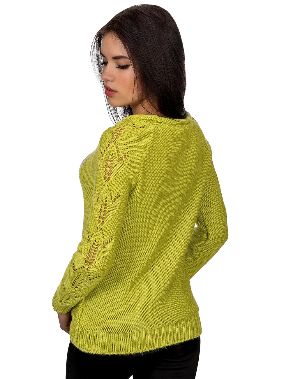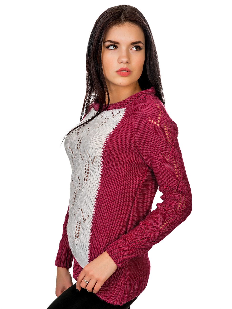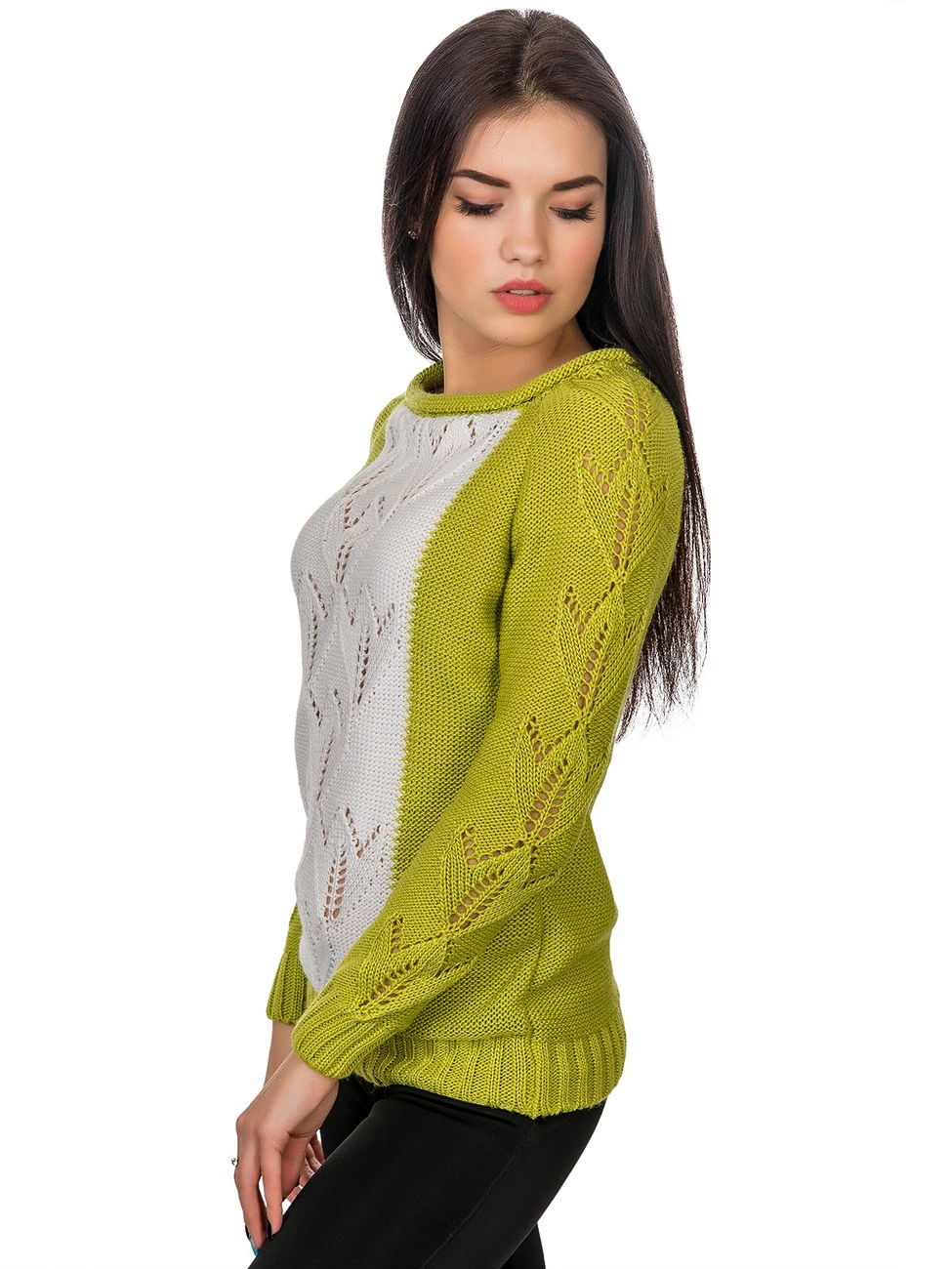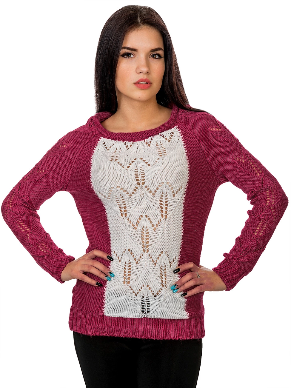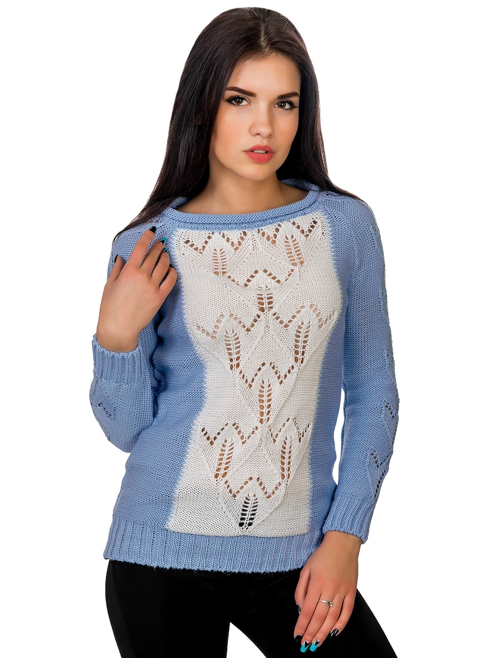 приятной на ощупь пряжи, впереди украшенный вставкой. Рукава и низ