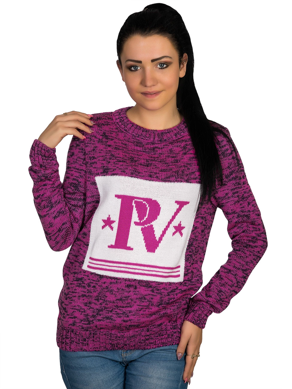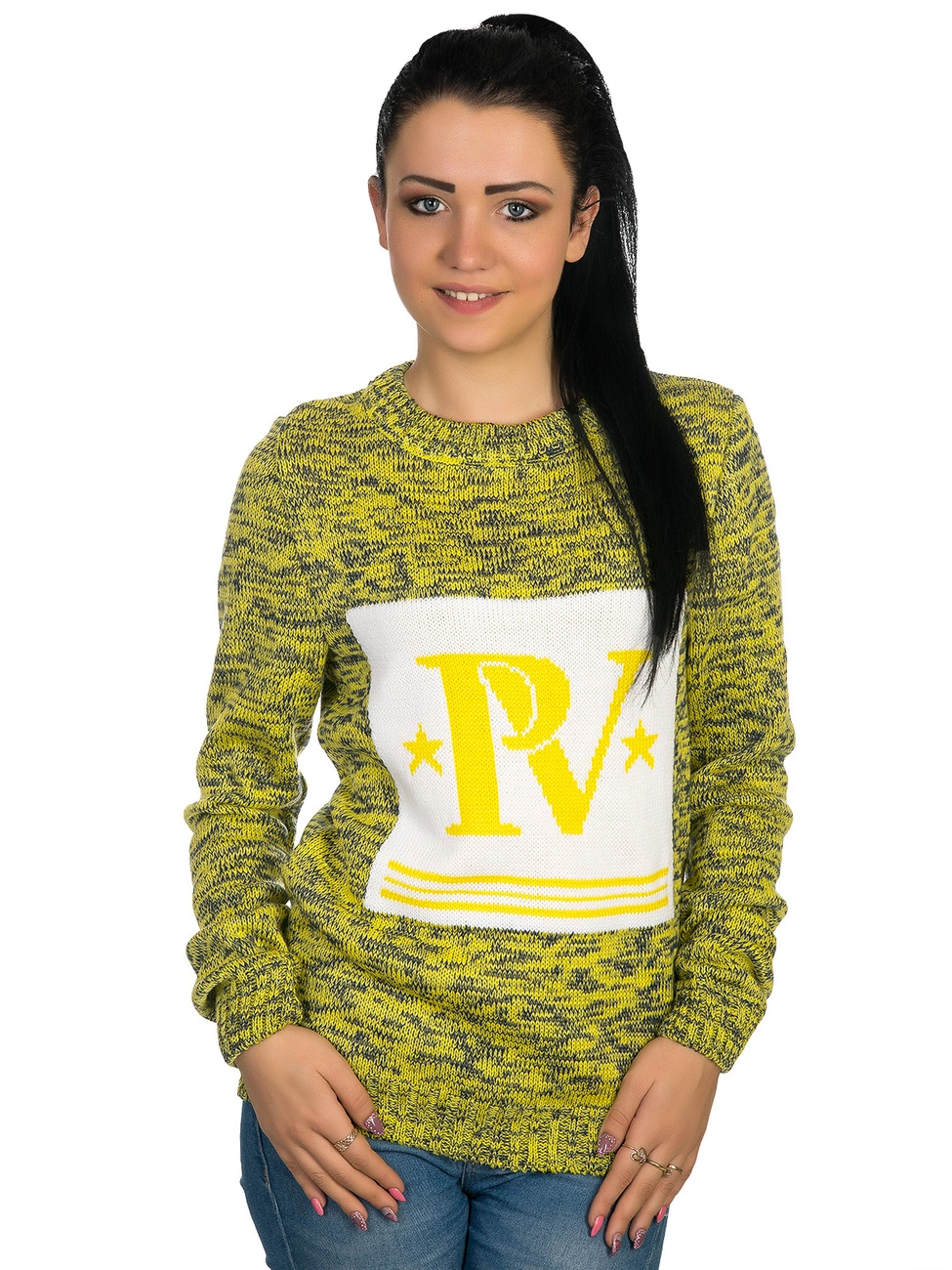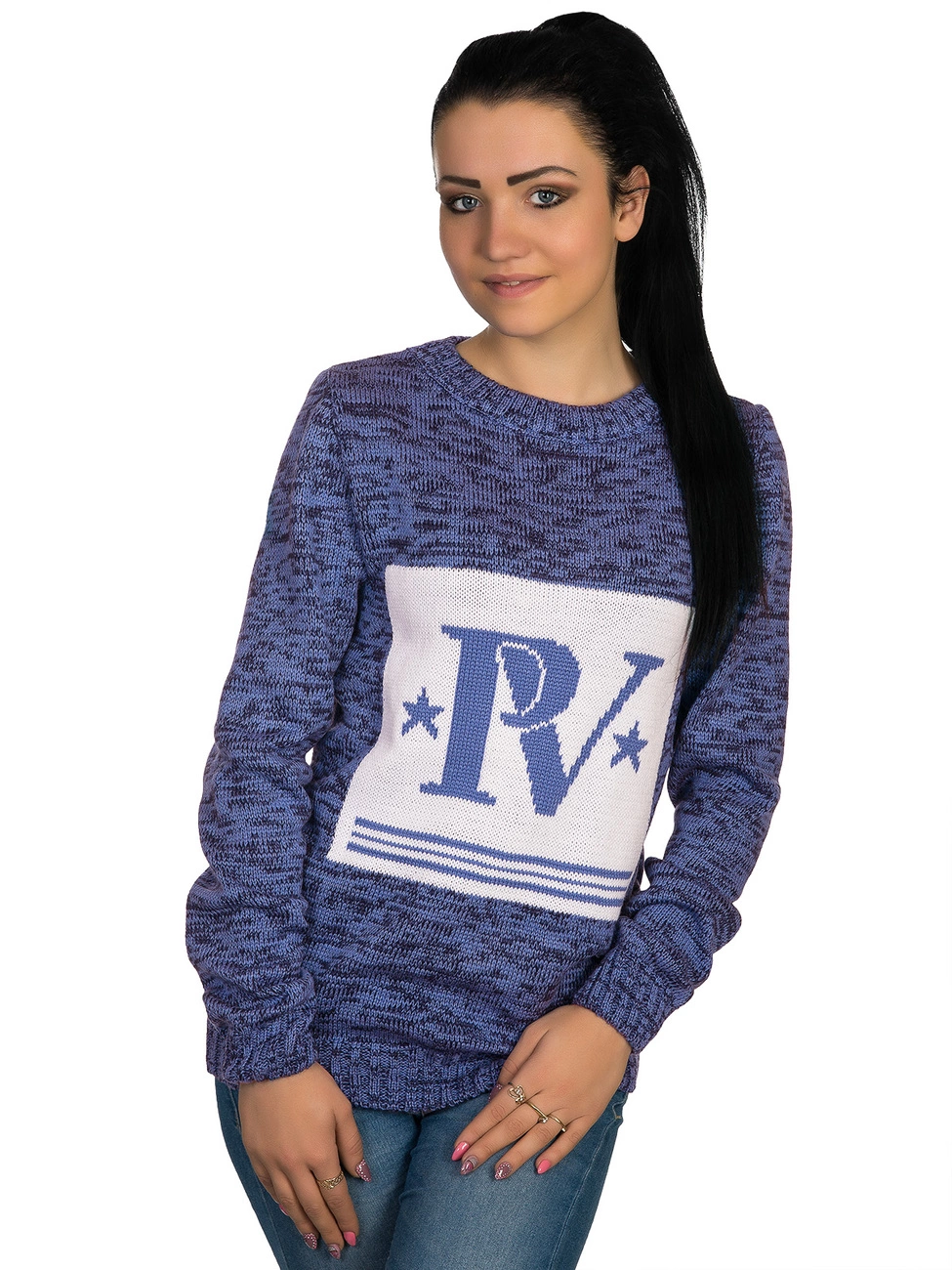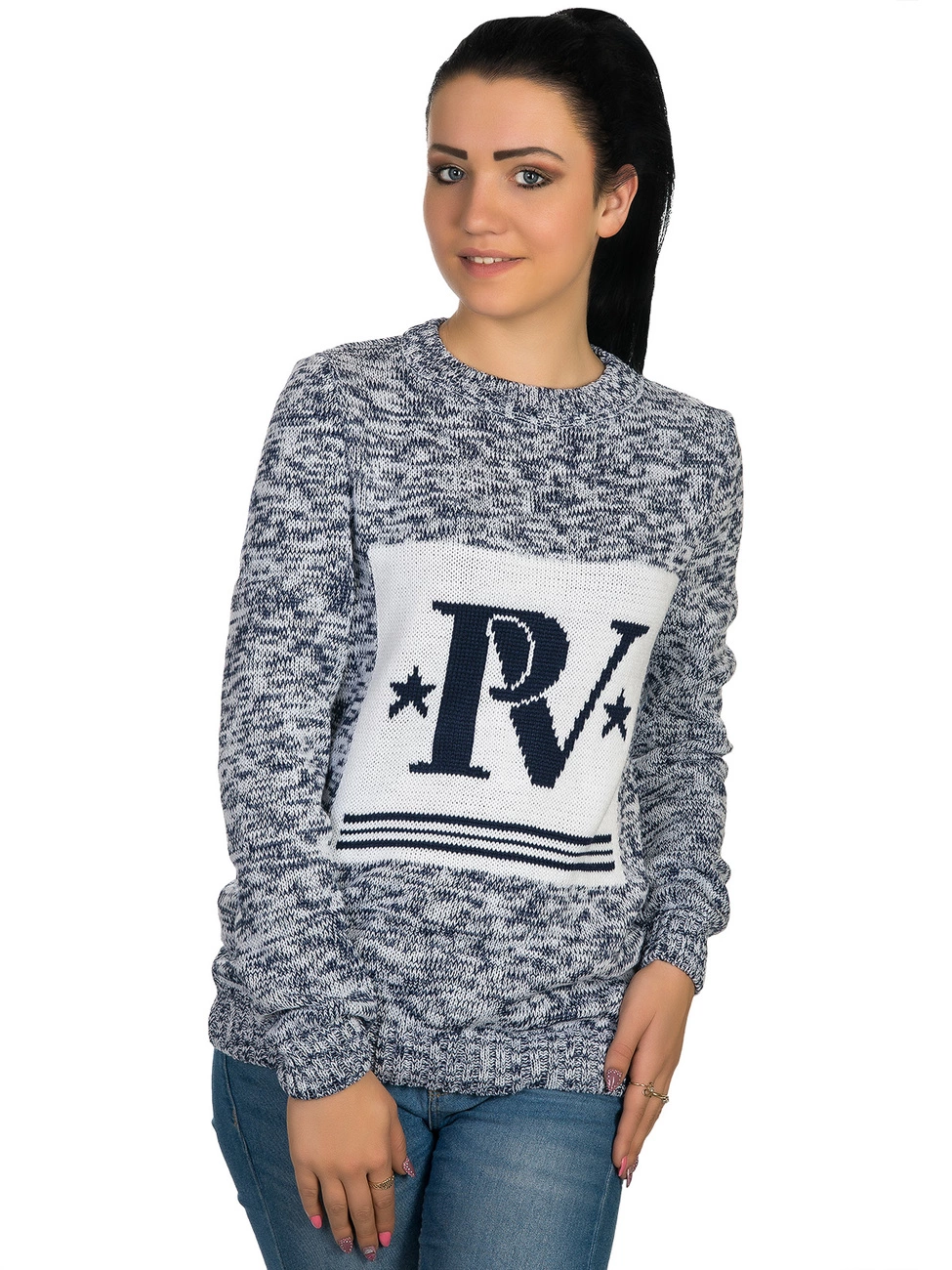 компании. Круглая горловина, рукава и низ изделия выполнены