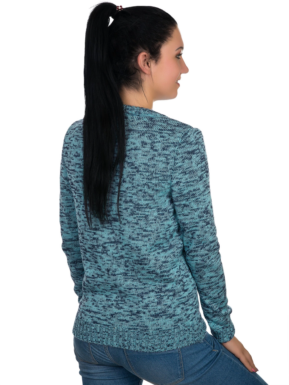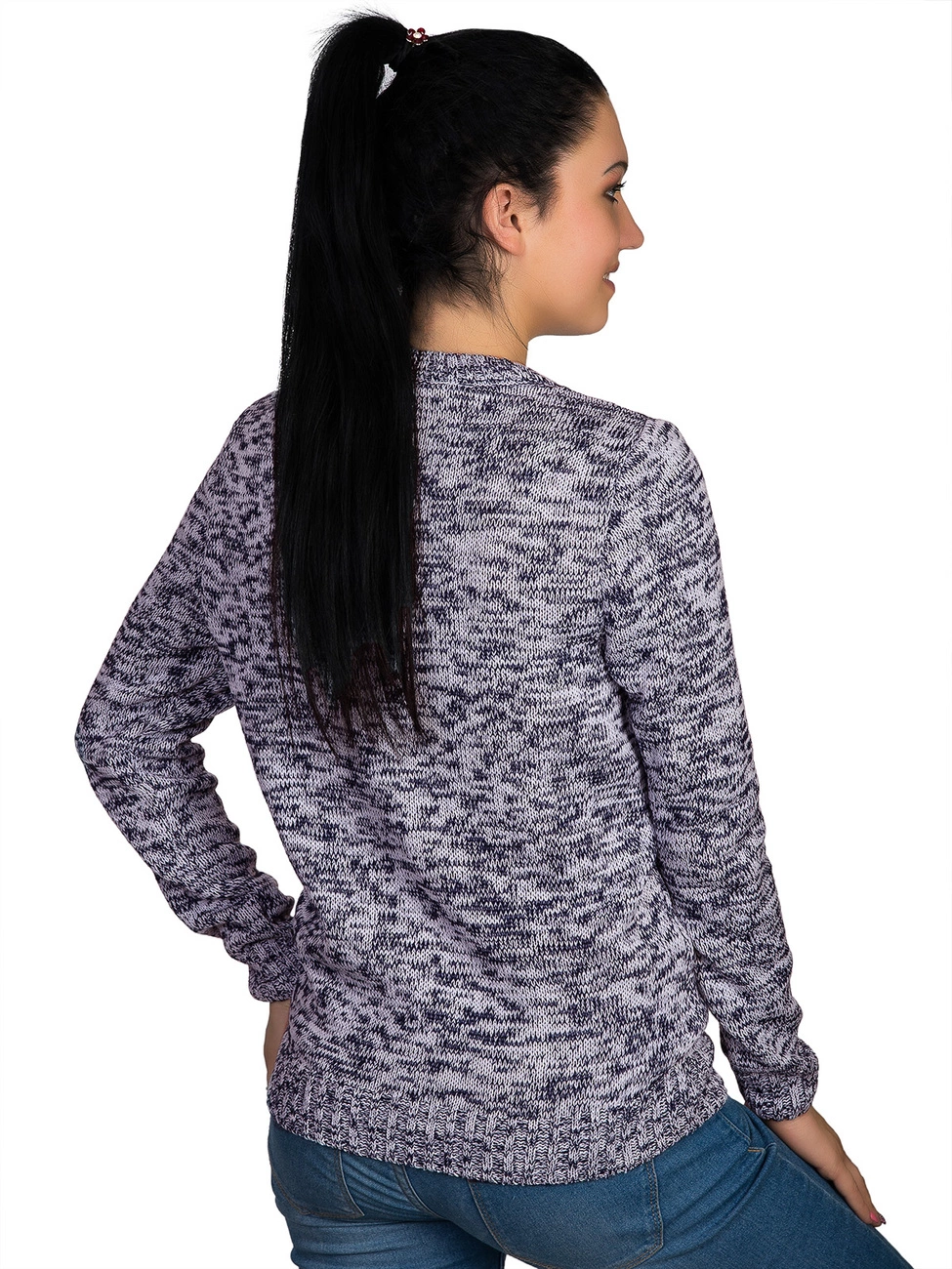 сочетания двух цветов, техникой меланж. Круглая горловина, рукава и