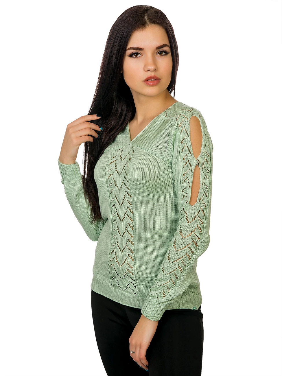 Длинный рукав и низ изделия оформлены вязкой-резинкой для
