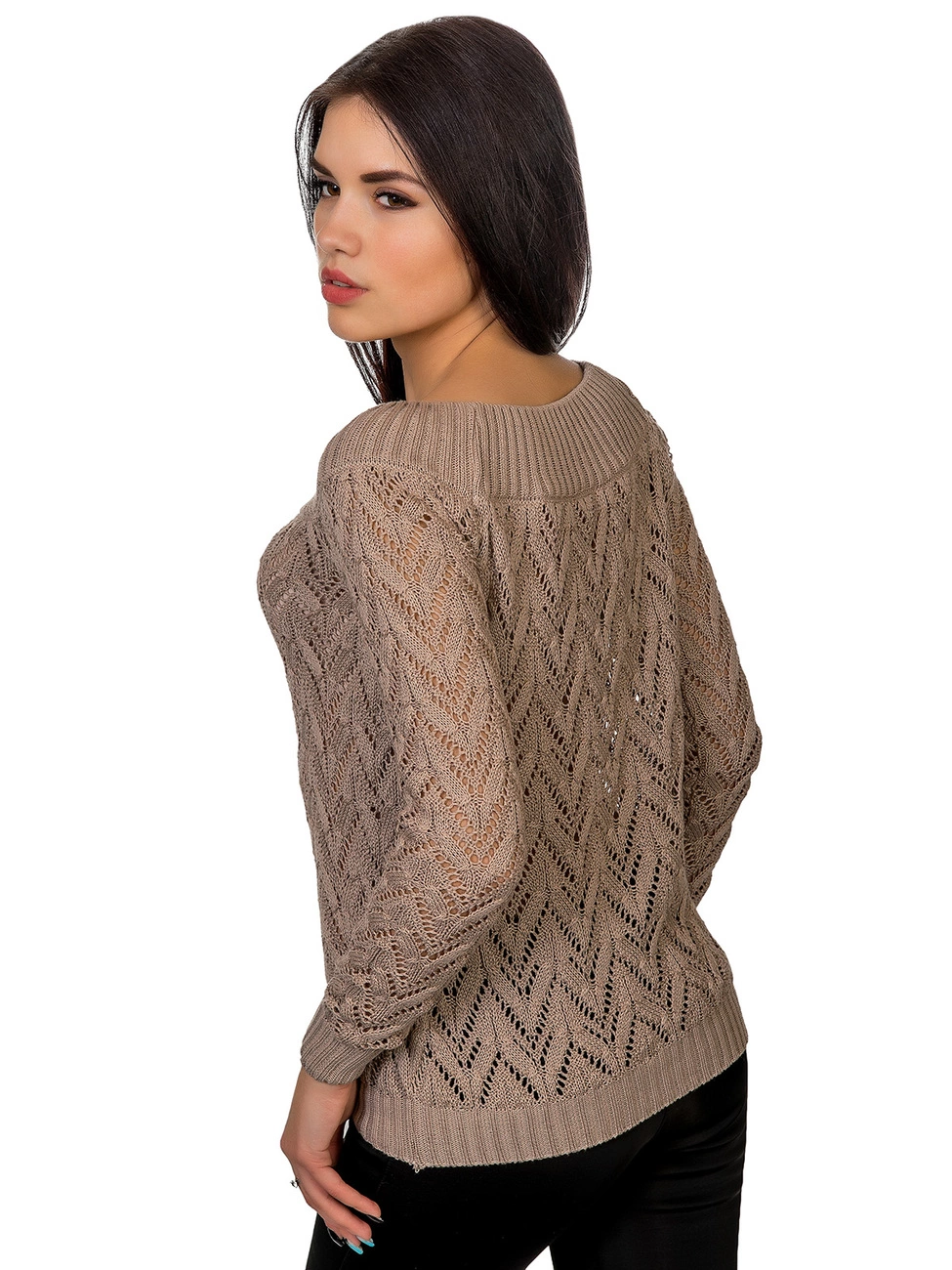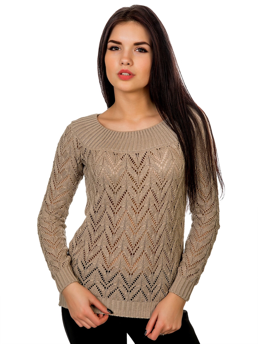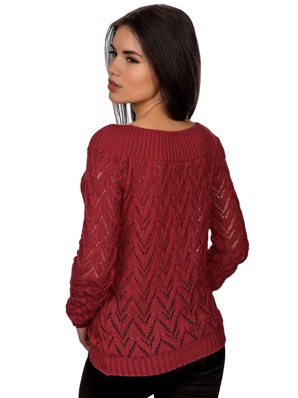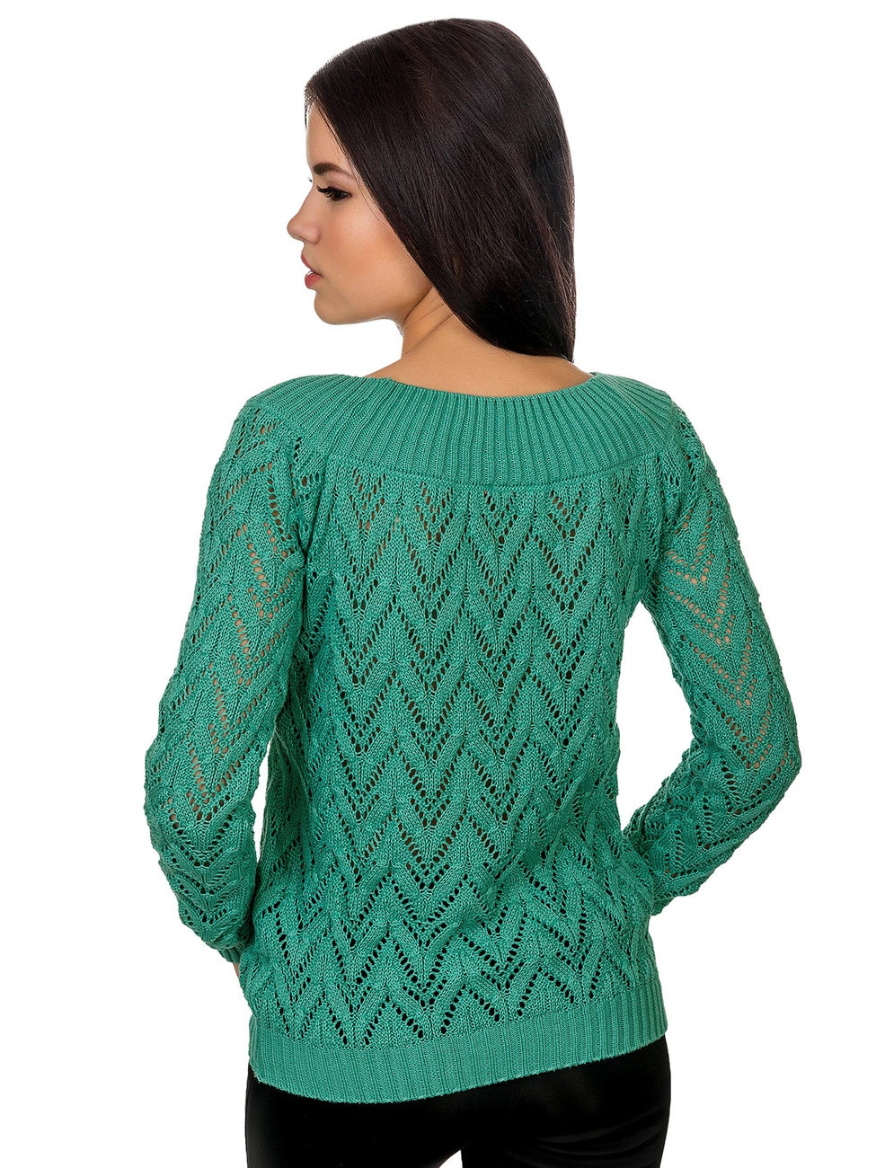Джемпер прямого силуэта выполненный ажурной вязкой из