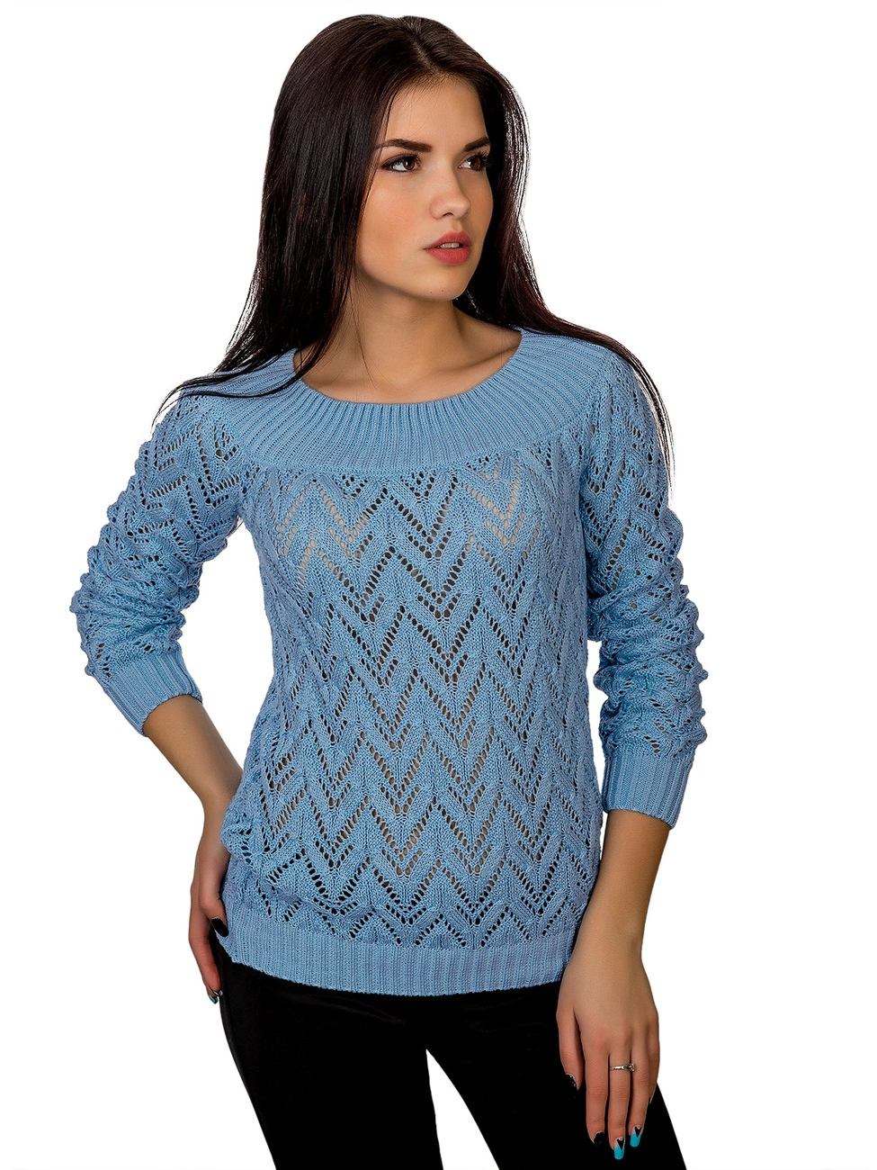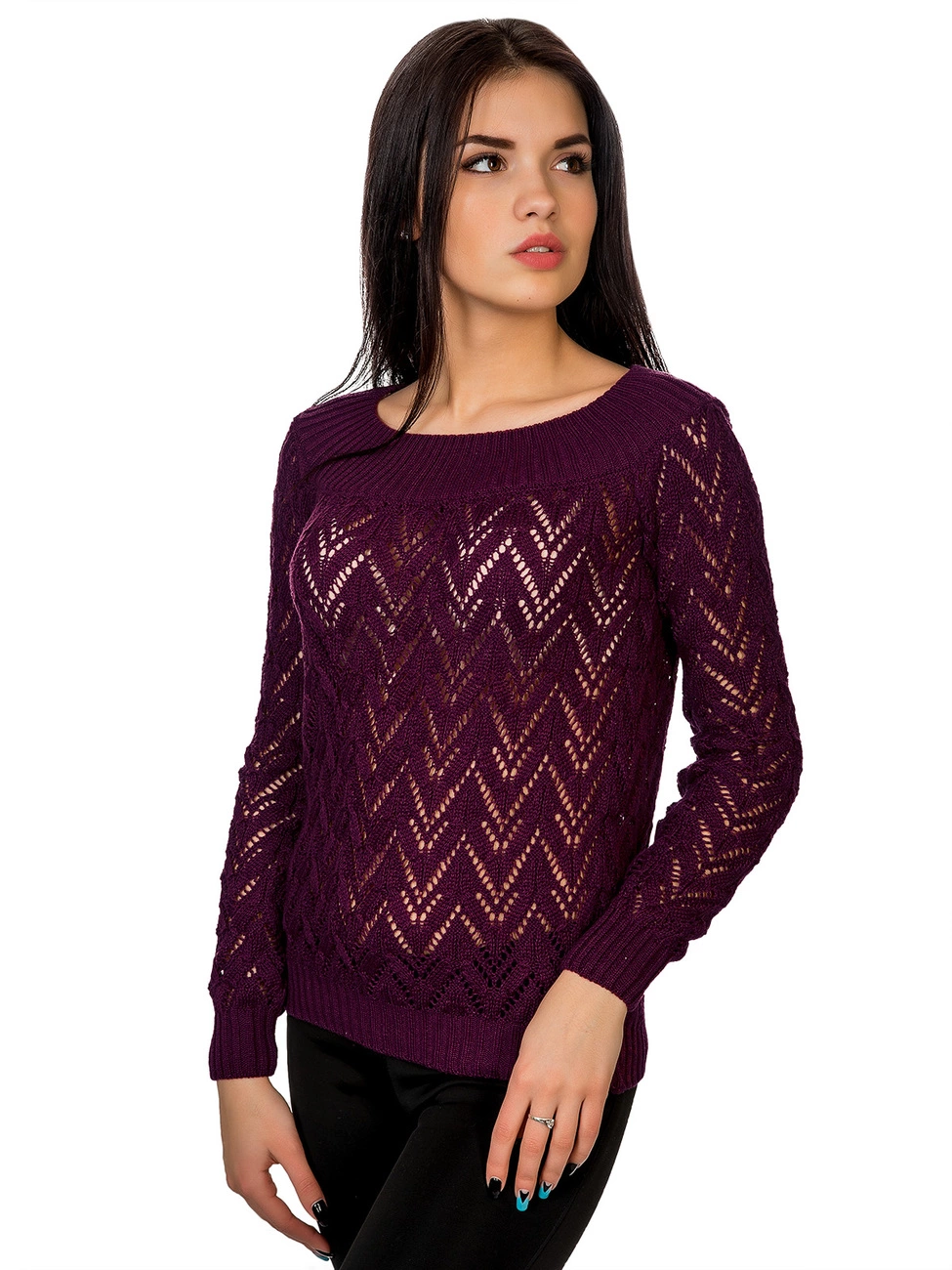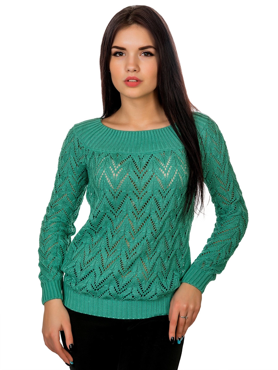 Джемпер прямого силуэта выполненный ажурной вязкой из