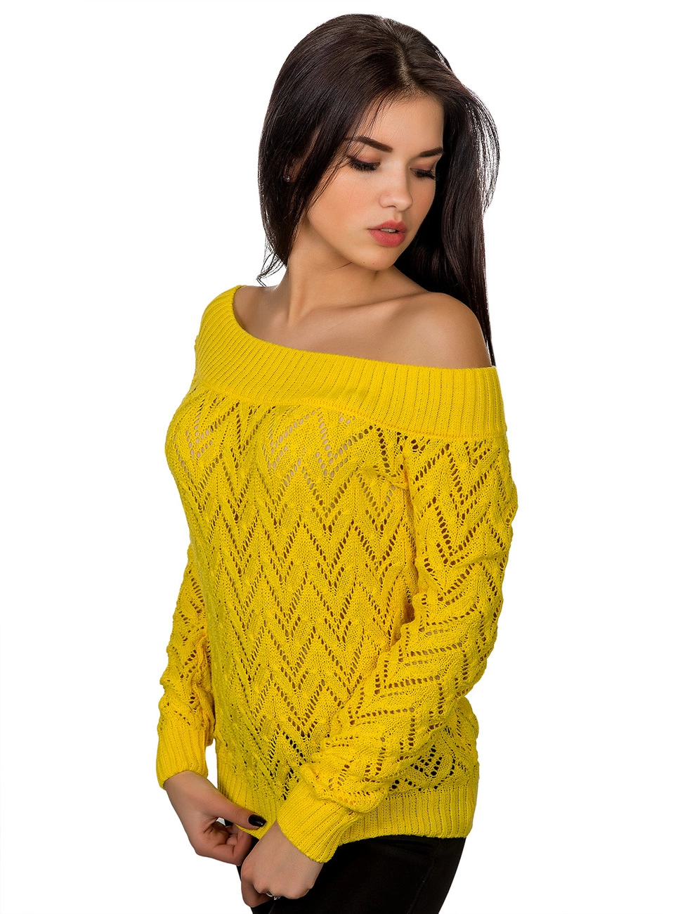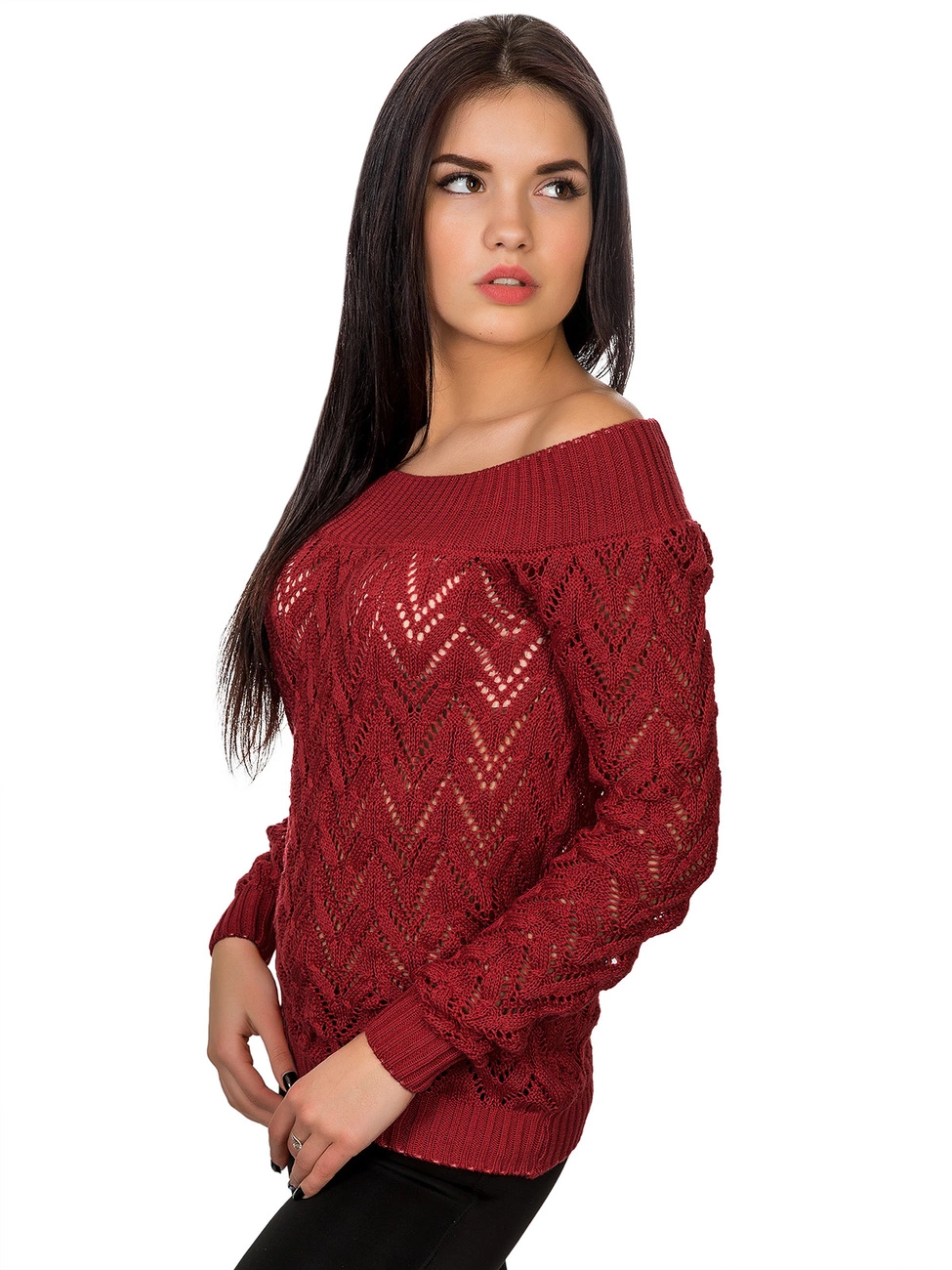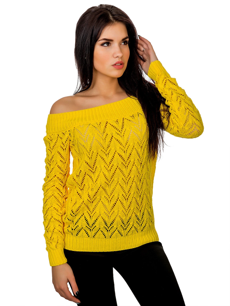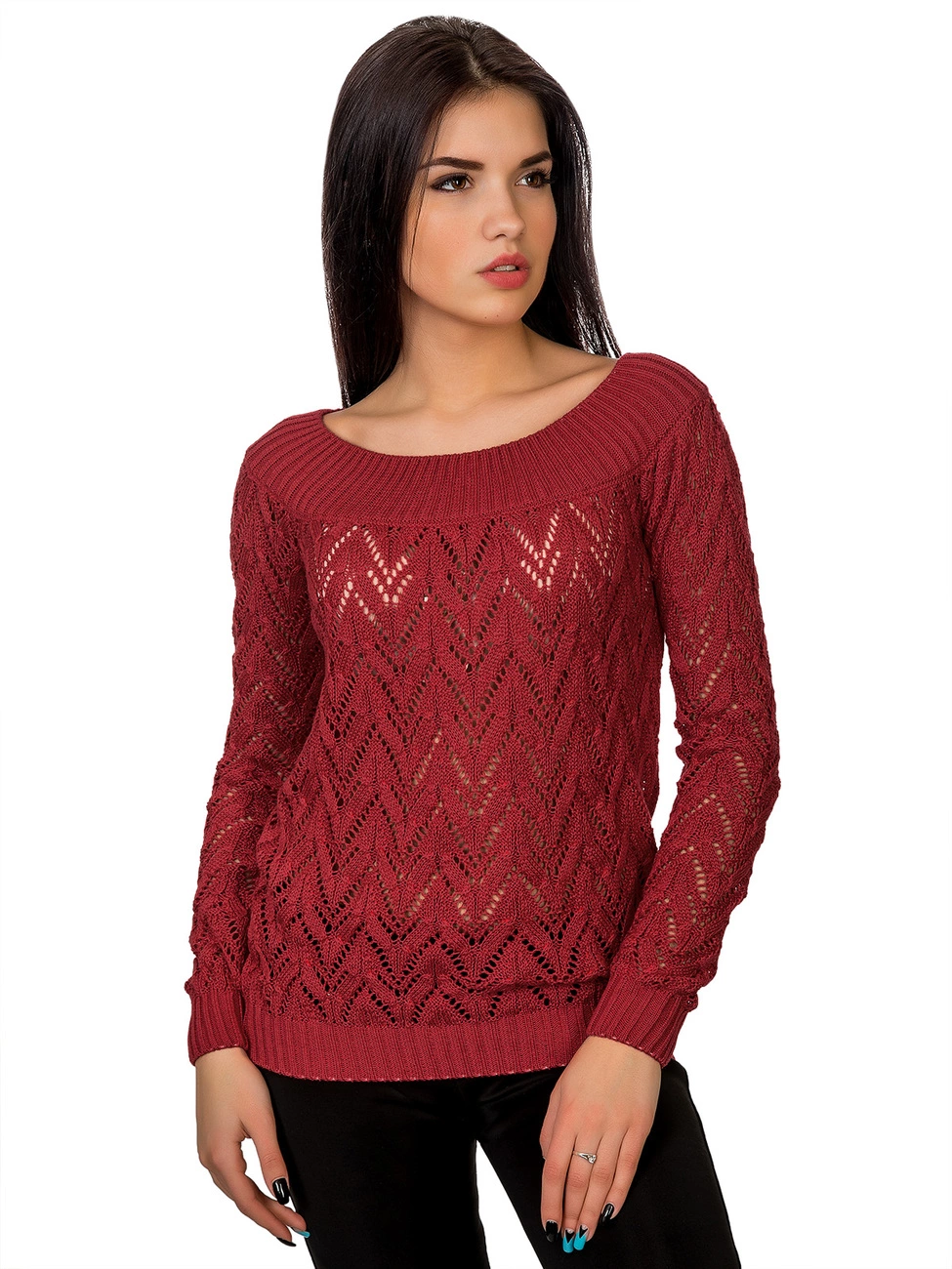 Джемпер прямого силуэта выполненный ажурной вязкой из
