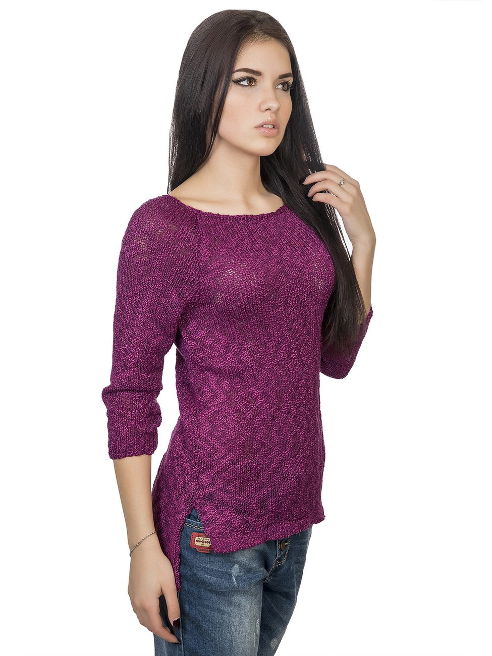 высококачественной пряжи. Джемпер прямого силуэта, по бокам