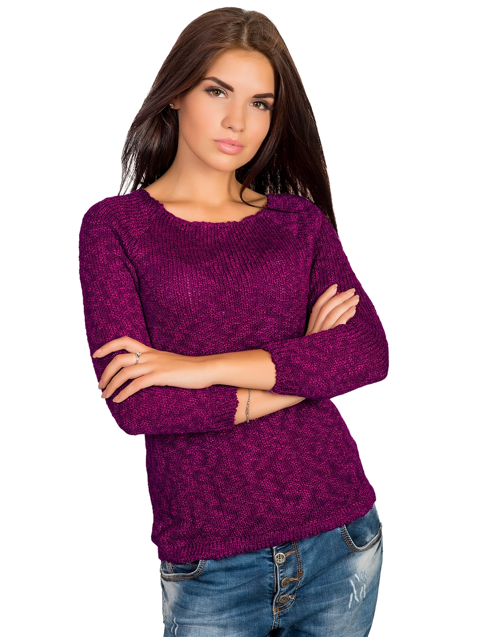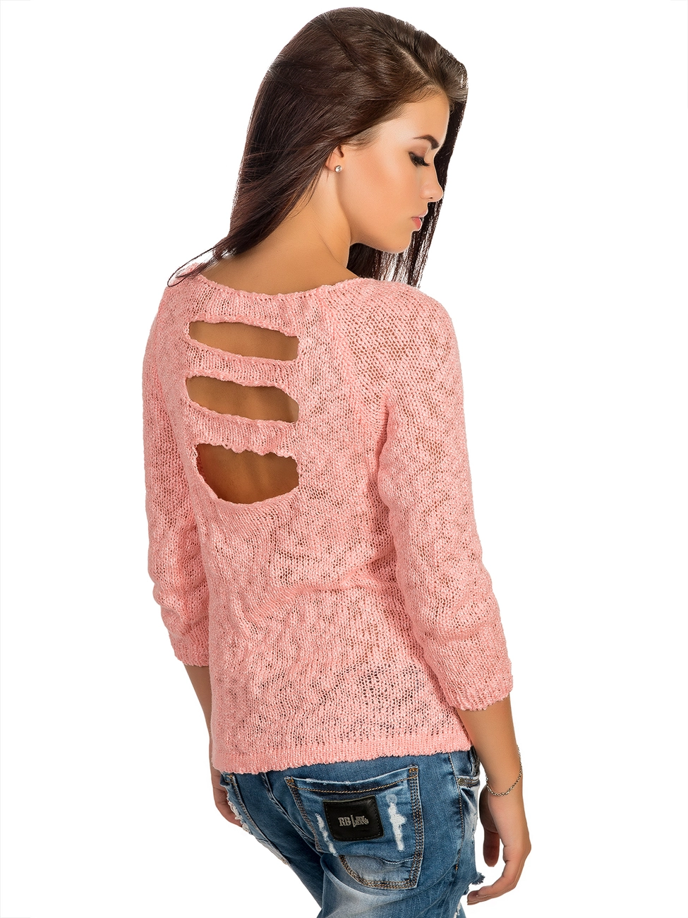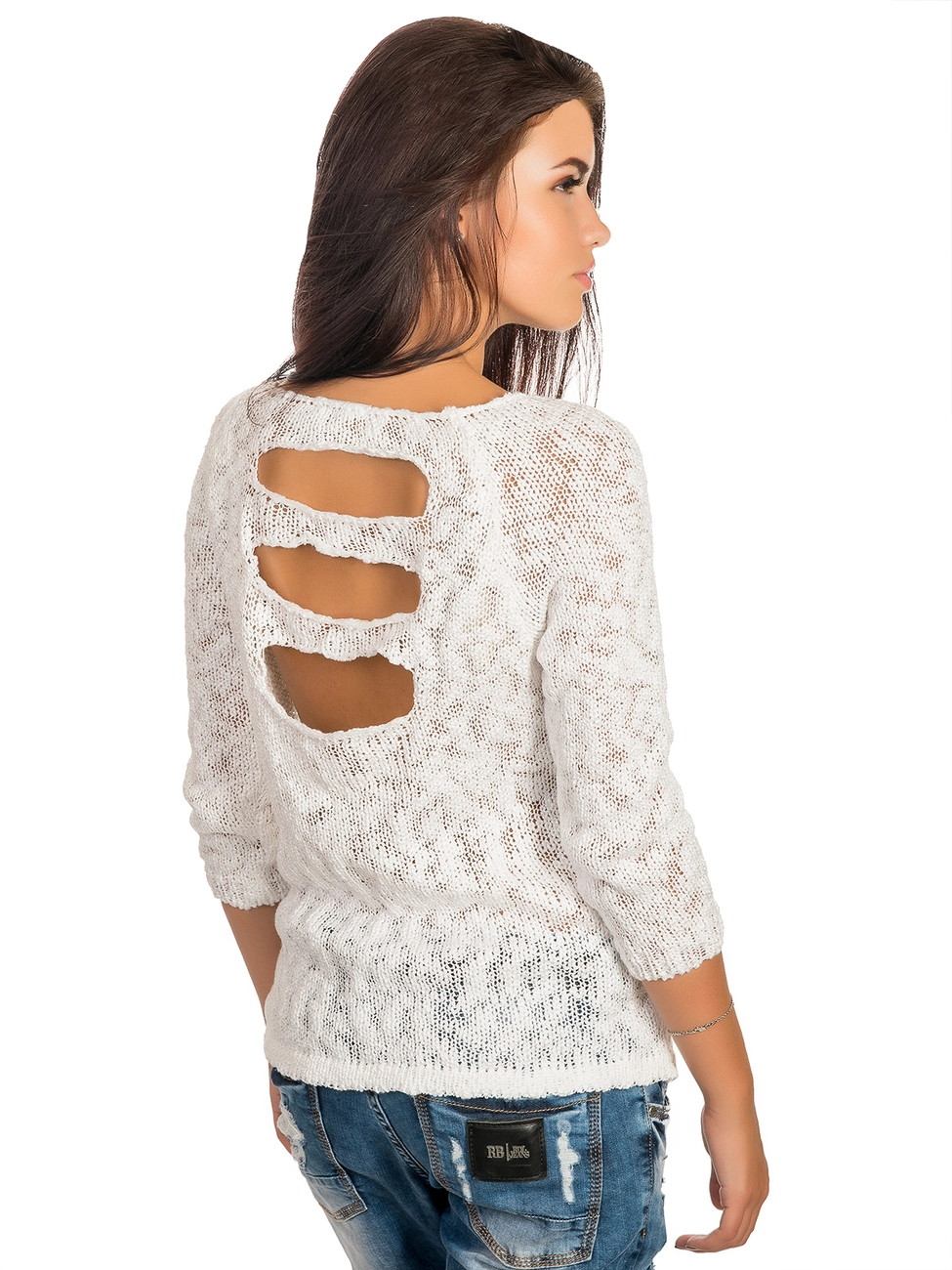 высококачественной пряжи. Джемпер прямого силуэта, спинка украшена