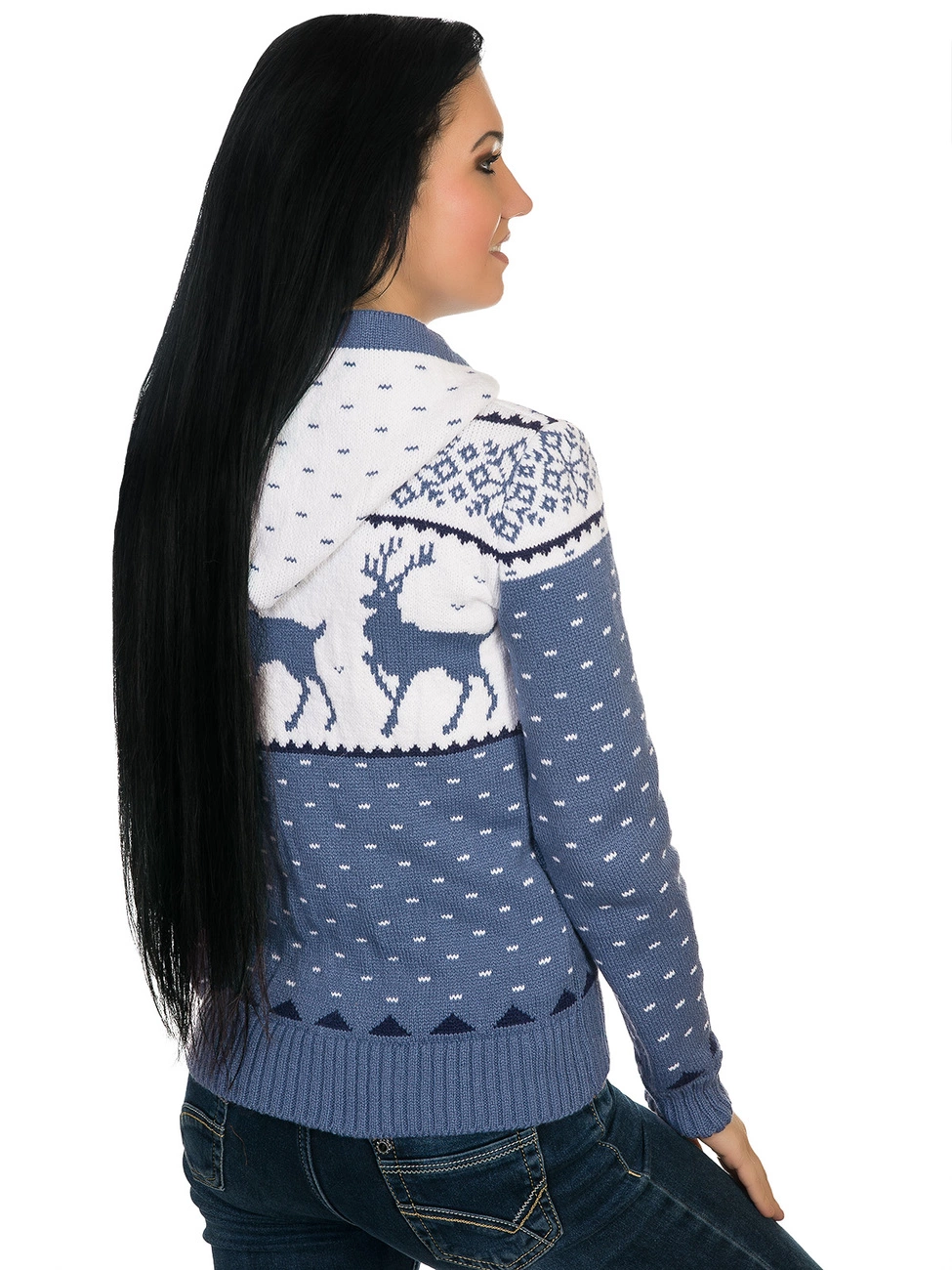 выполнена плотной жаккардовой вязкой, спереди на молнии. Модель