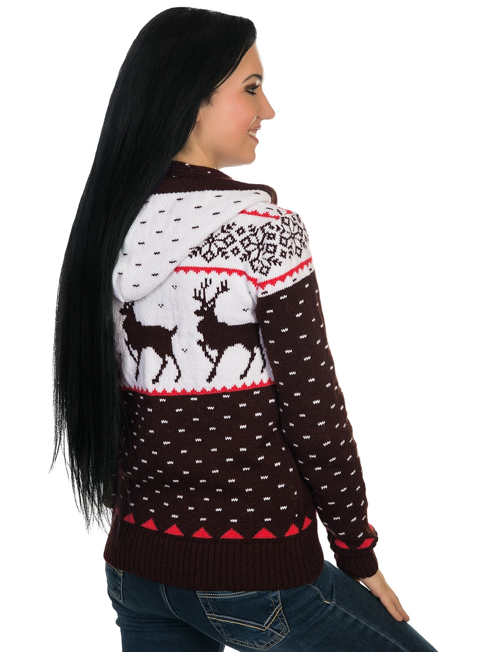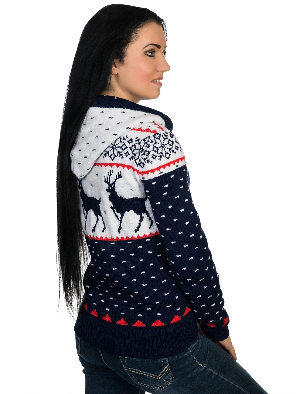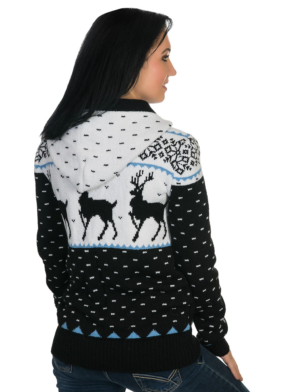 выполнена жаккардовым рисунком в виде оленей. Комфортная