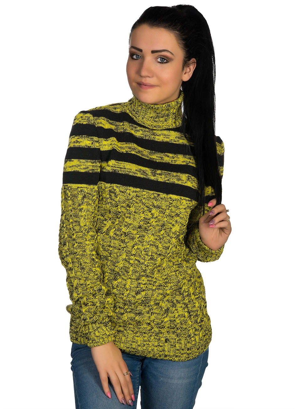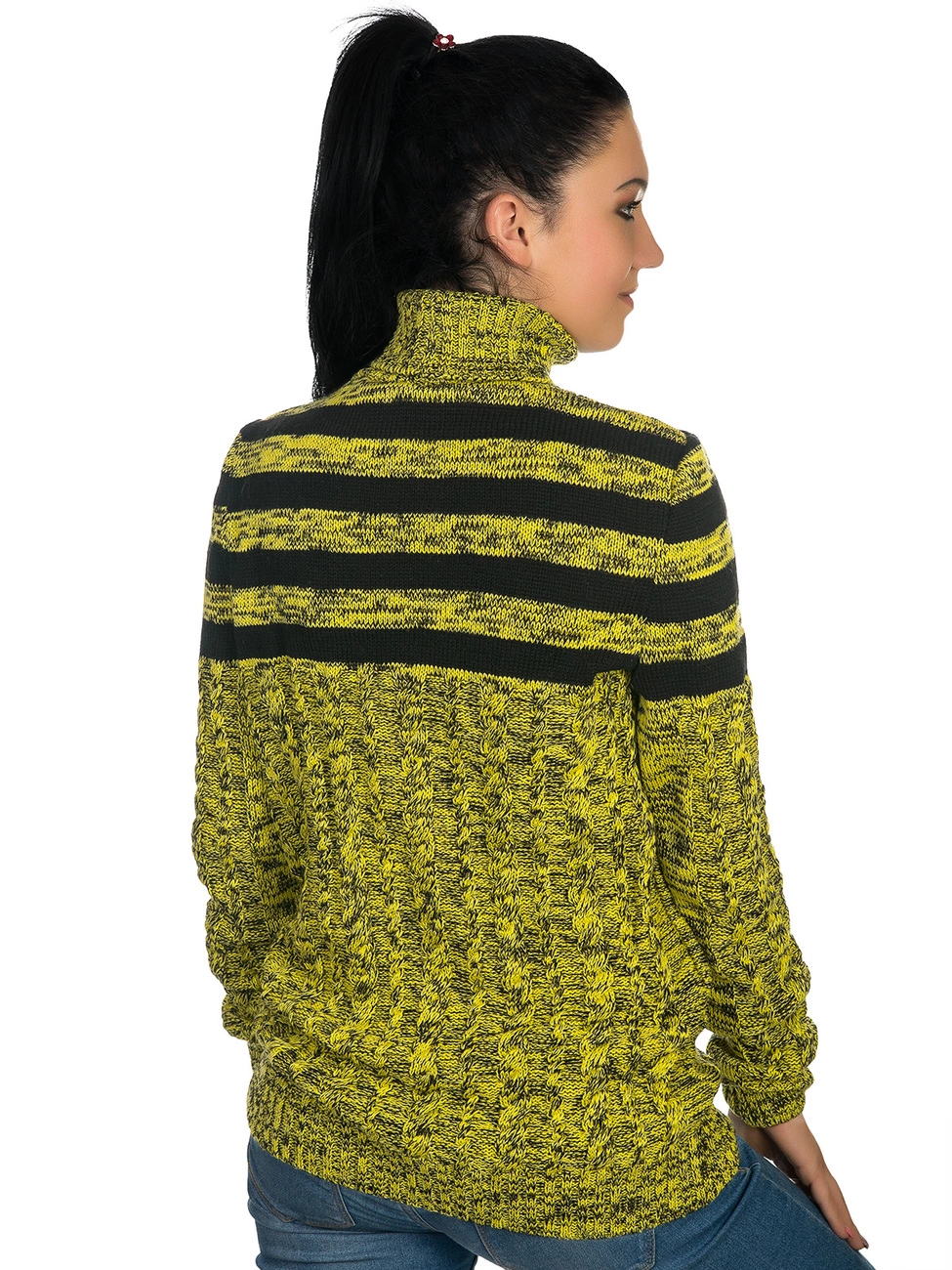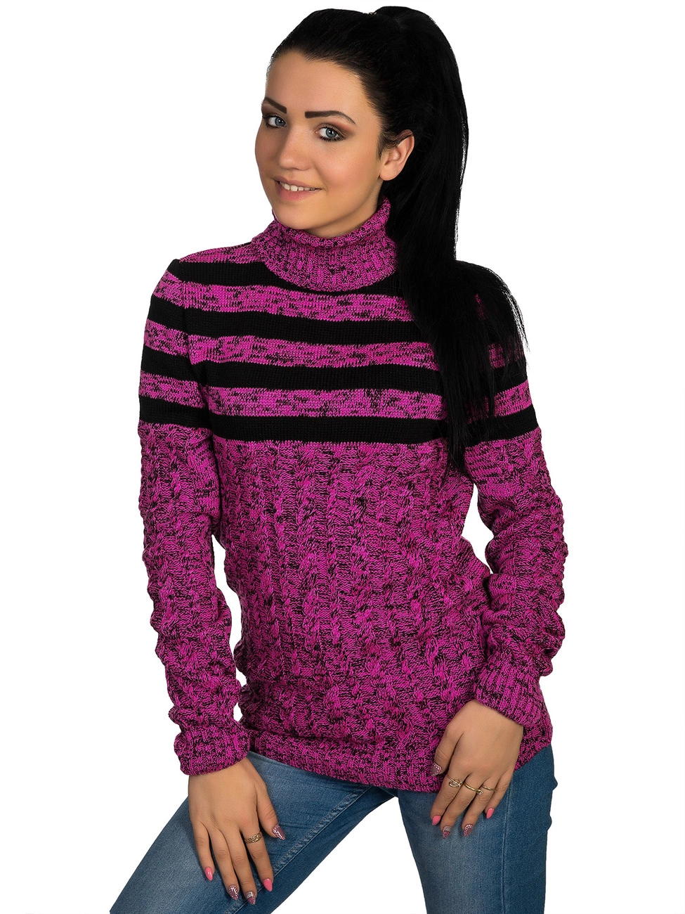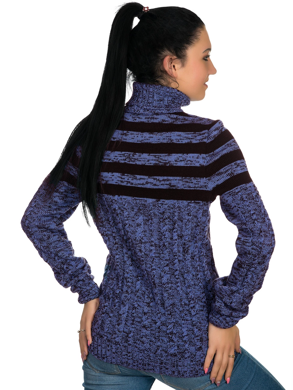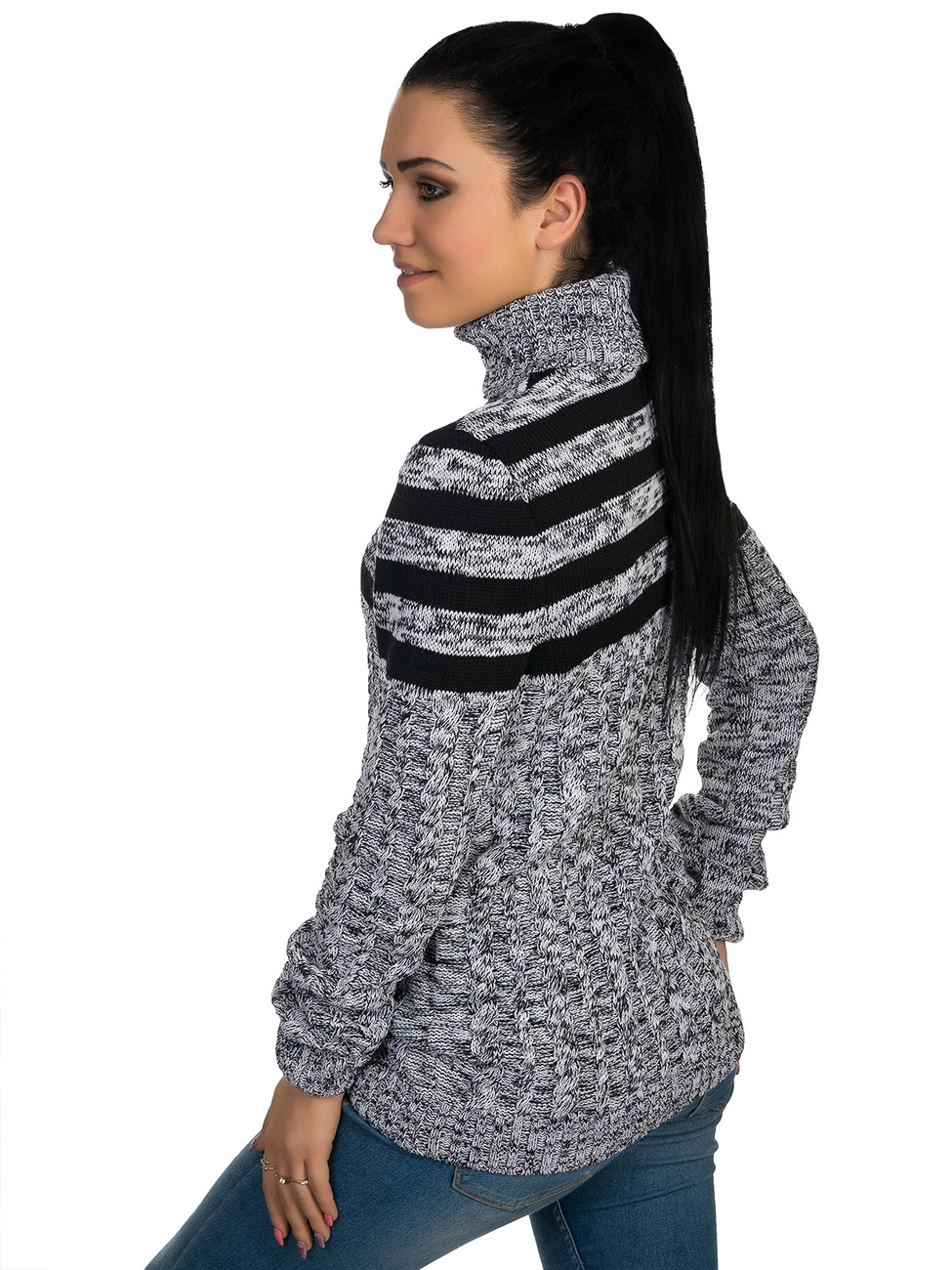 контрастными полосами. Свитер выполнен техникой "меланж" с помощью