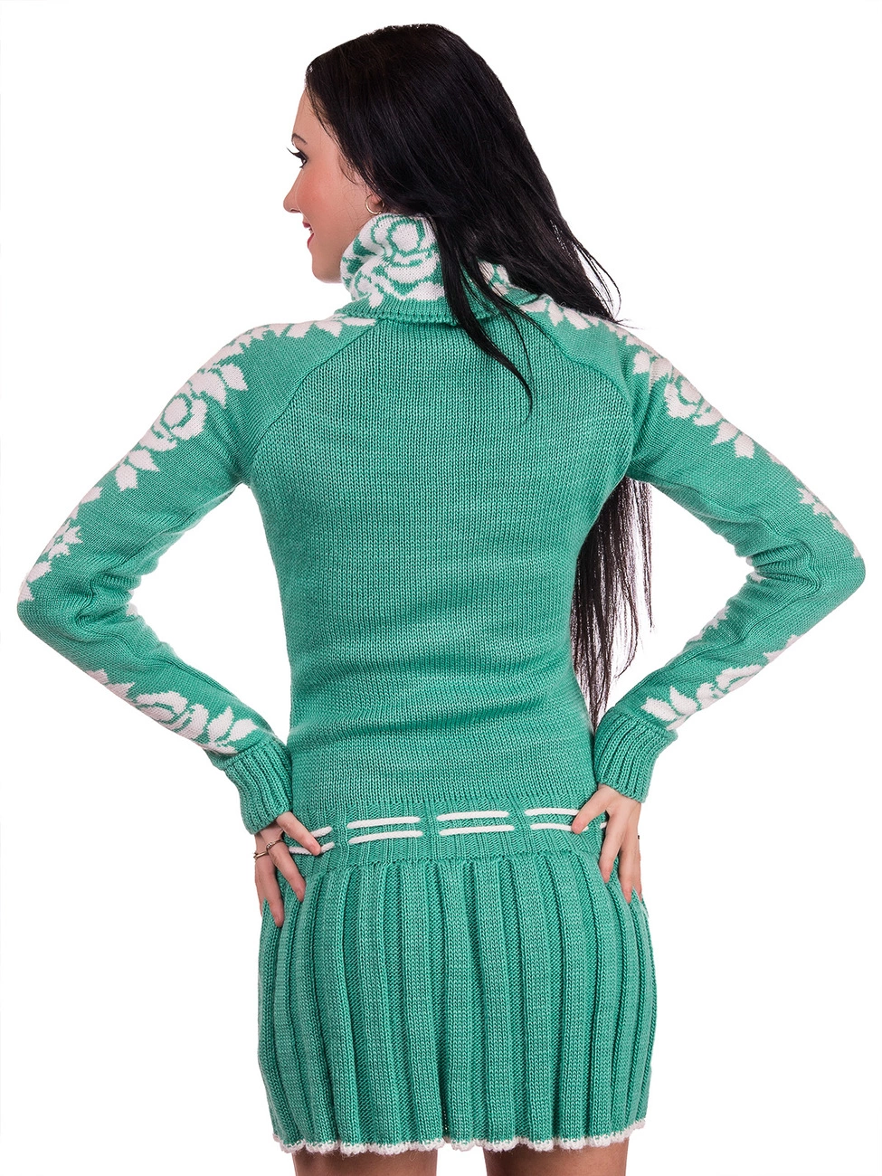 прекрасных дам. Длинные рукава и высокий воротник покрыты цветочным