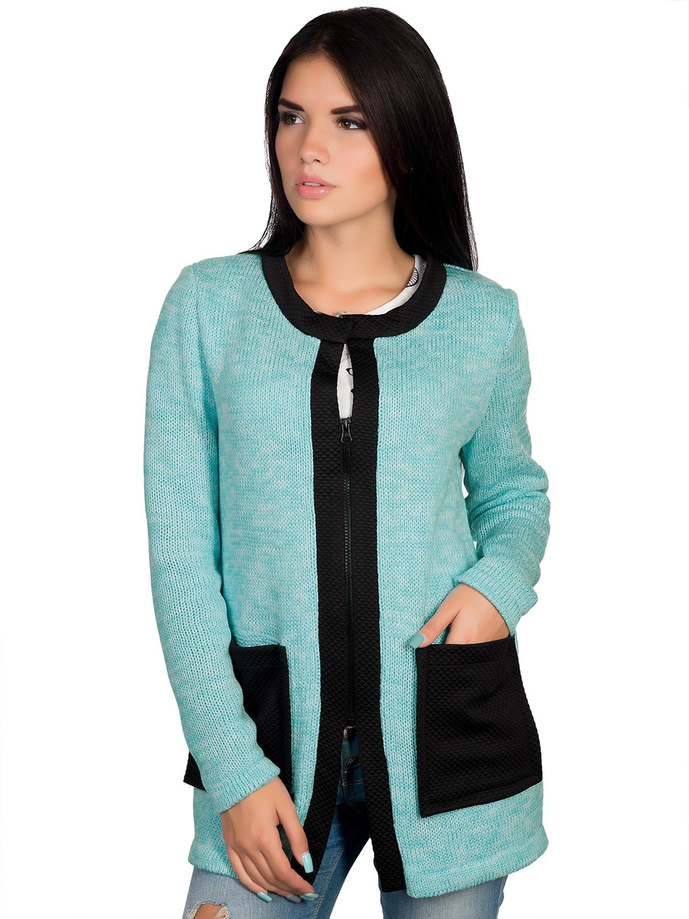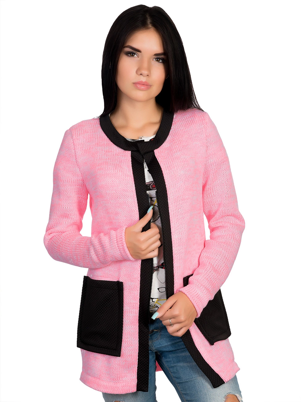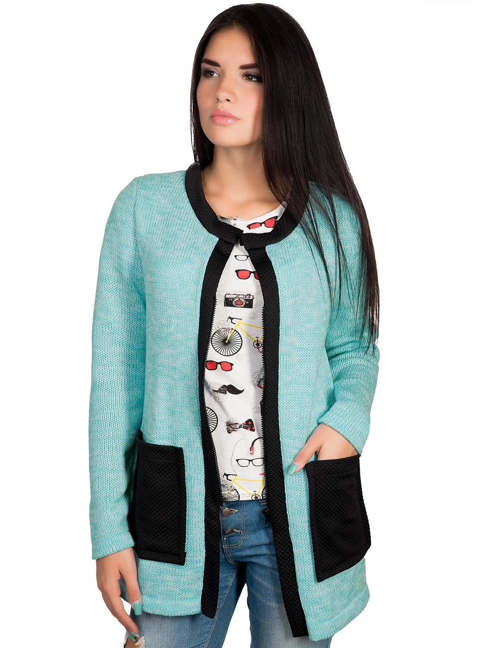приятной на ощупь пряжи. Изюминку кардигану придает контрастная