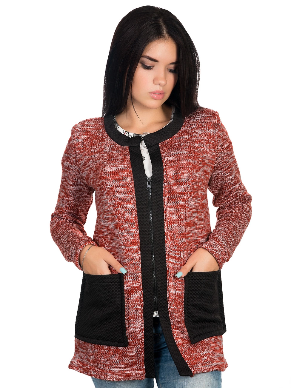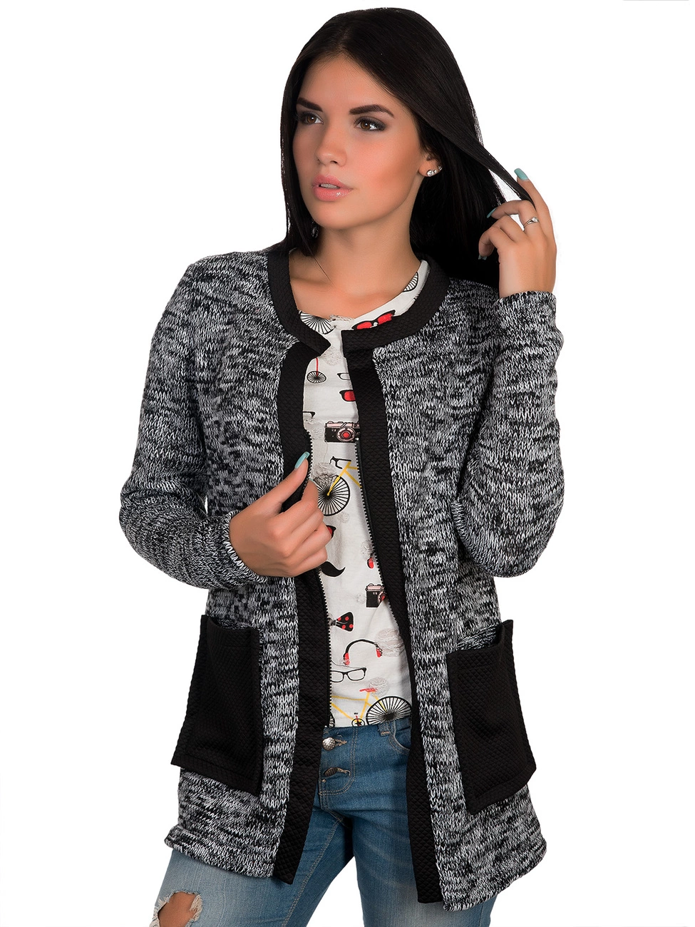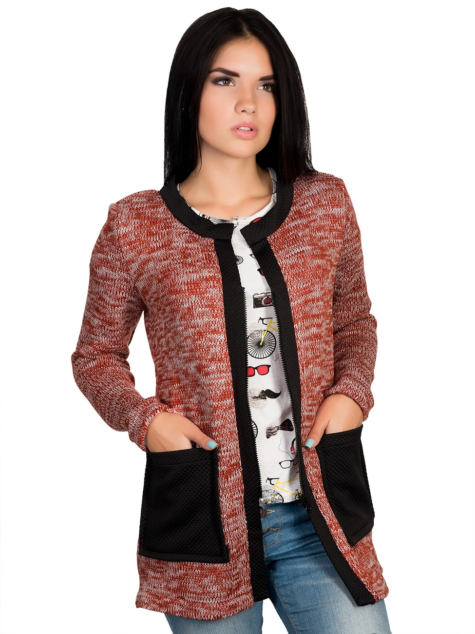 приятной на ощупь пряжи. Изюминку кардигану придает контрастная