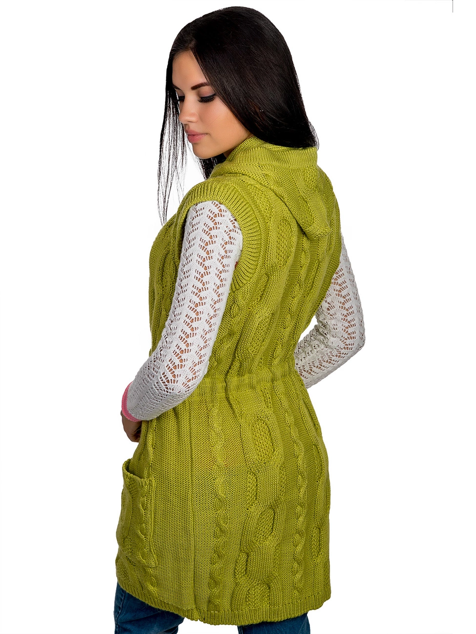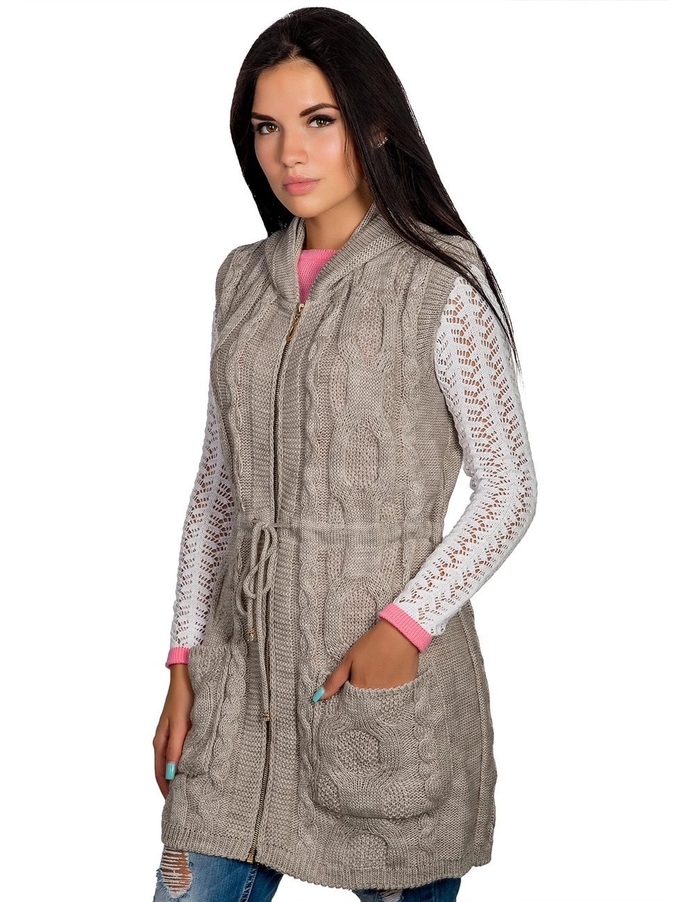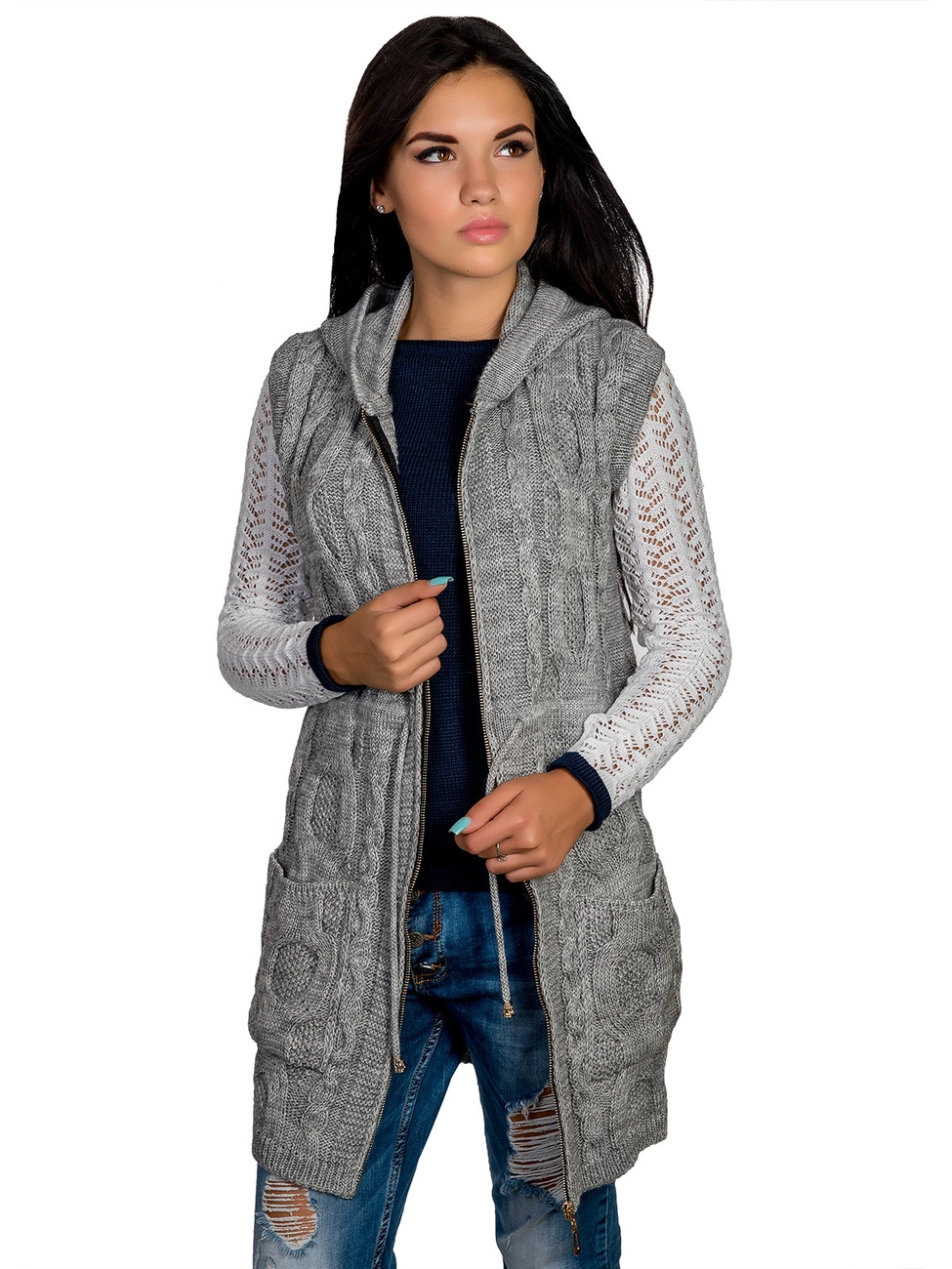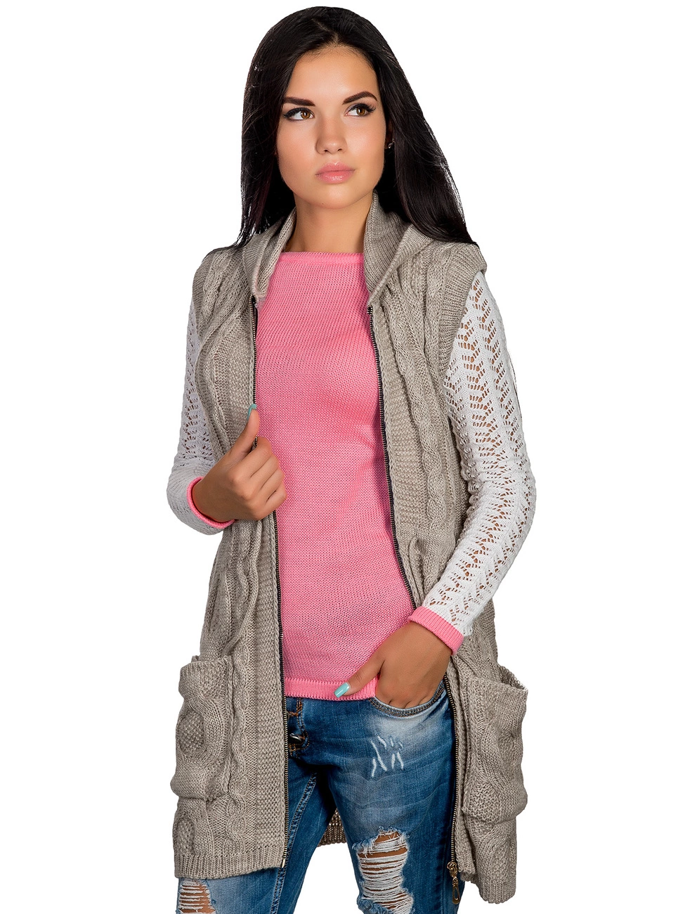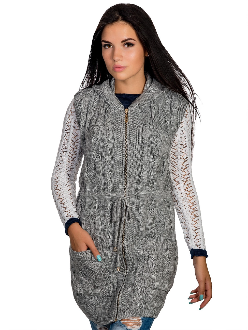 Модный, теплый кардиган без рукавов с карманами и декоративным