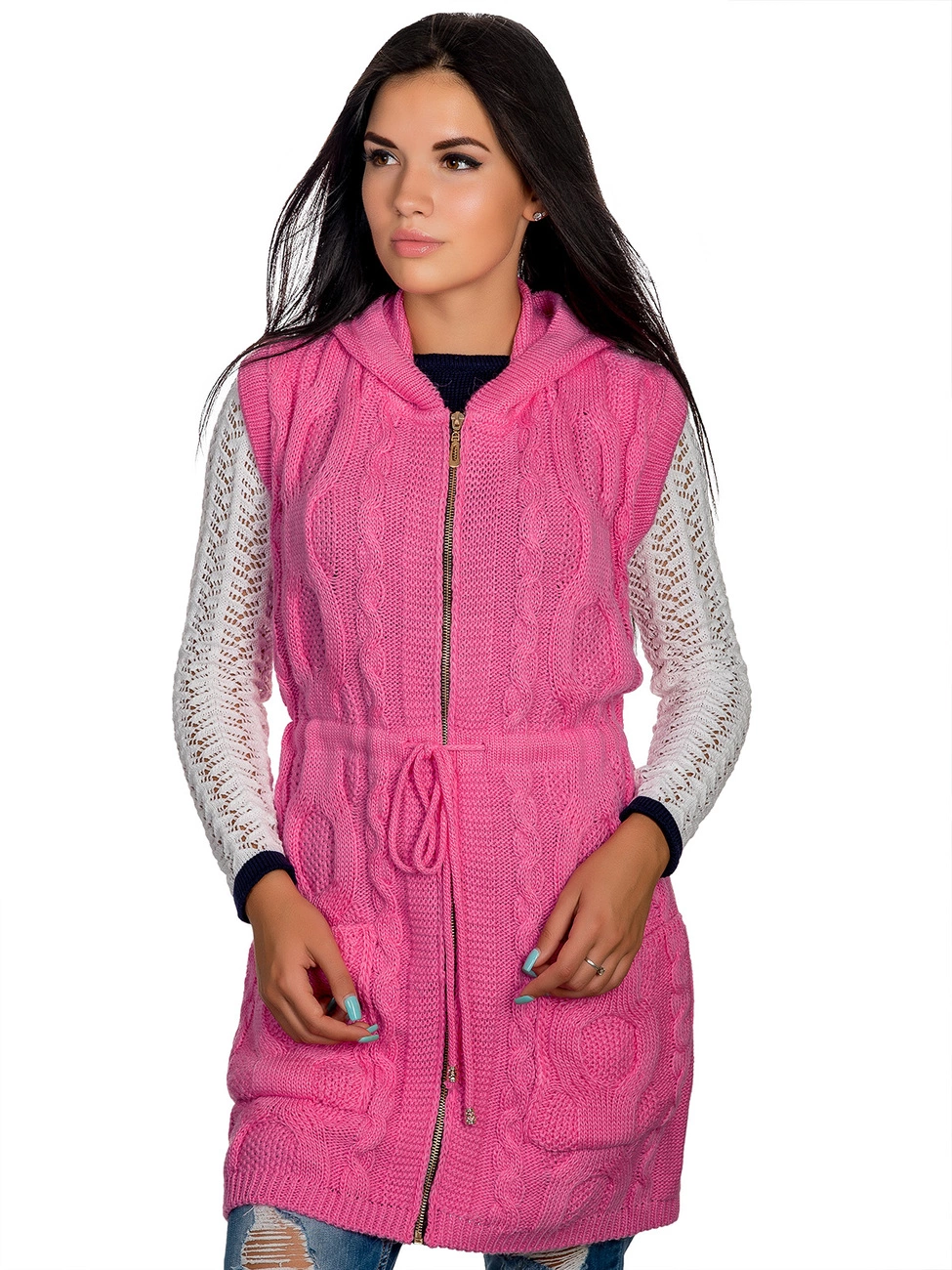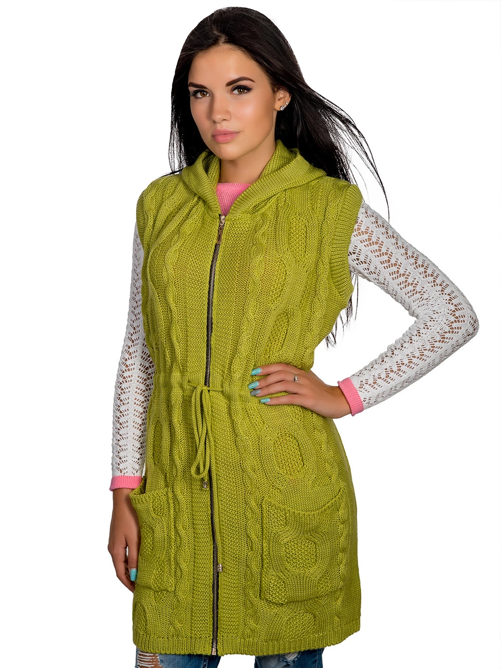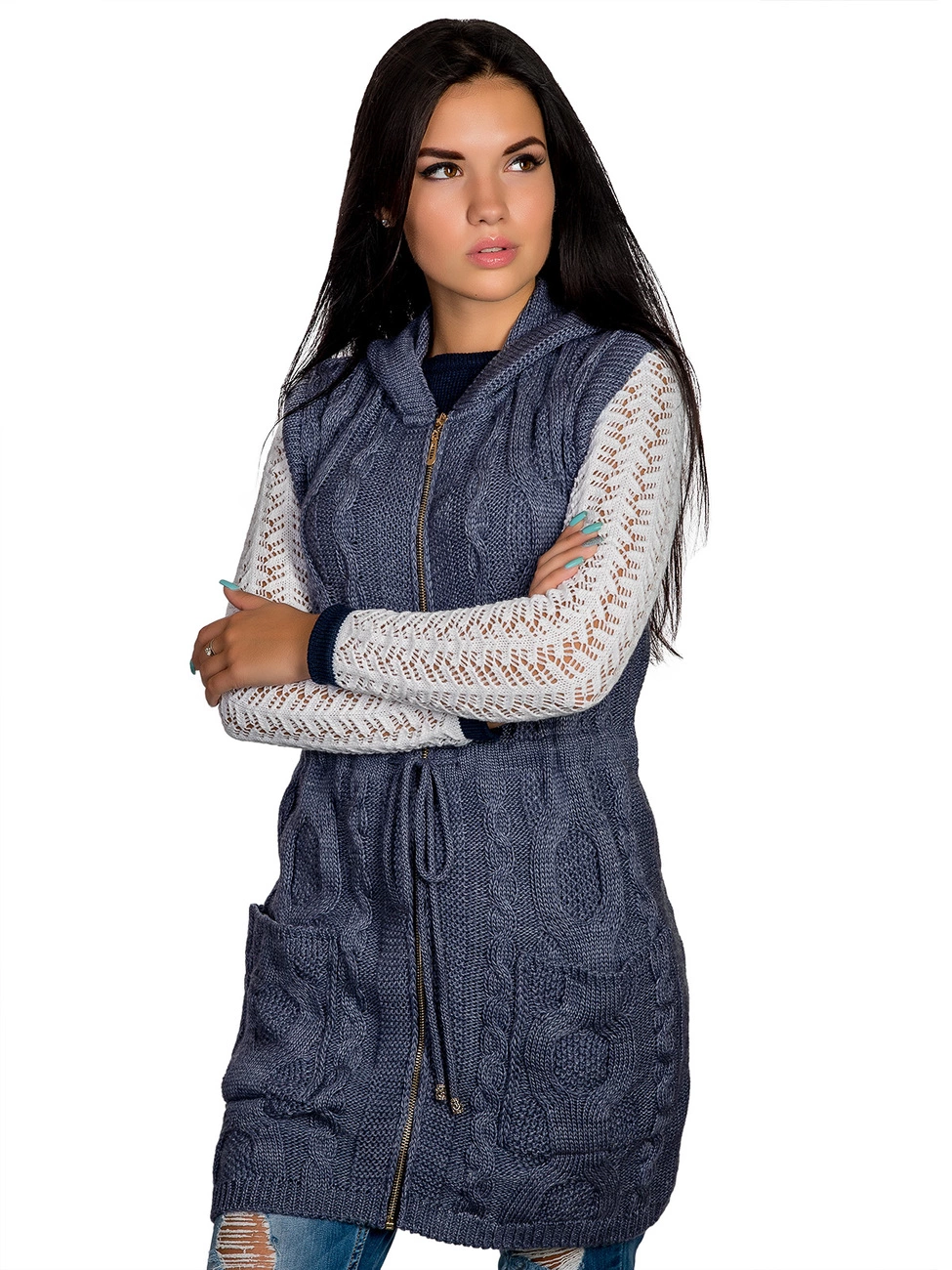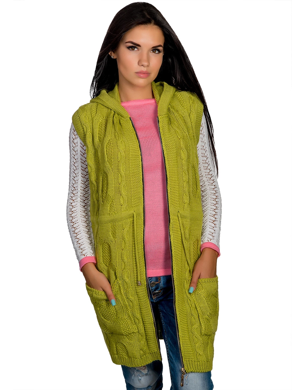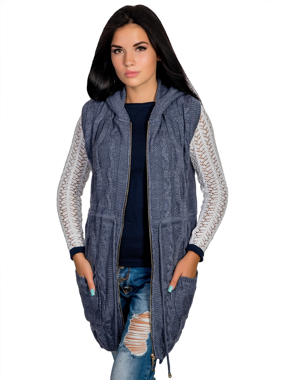Модный, теплый кардиган без рукавов с карманами и декоративным