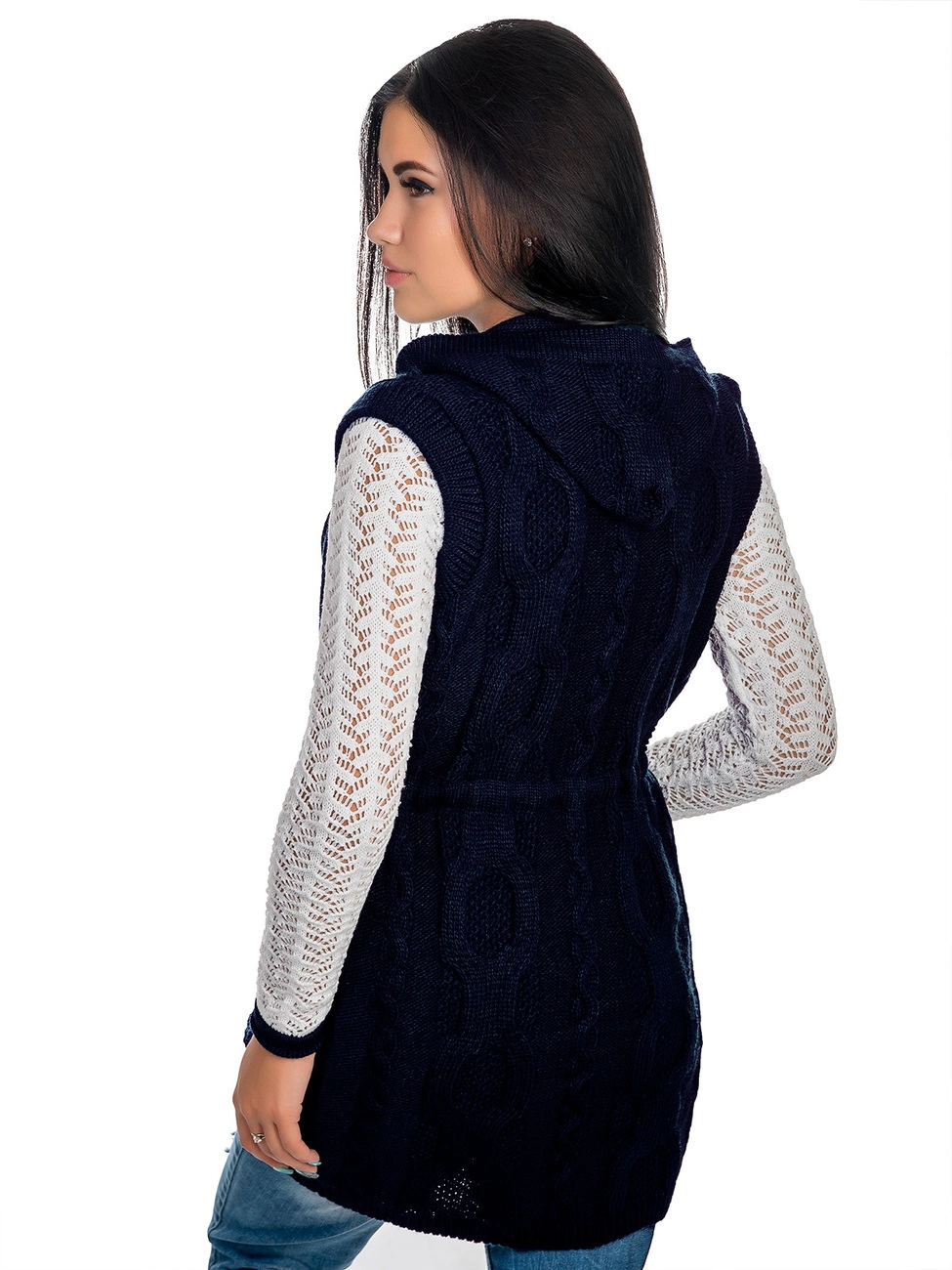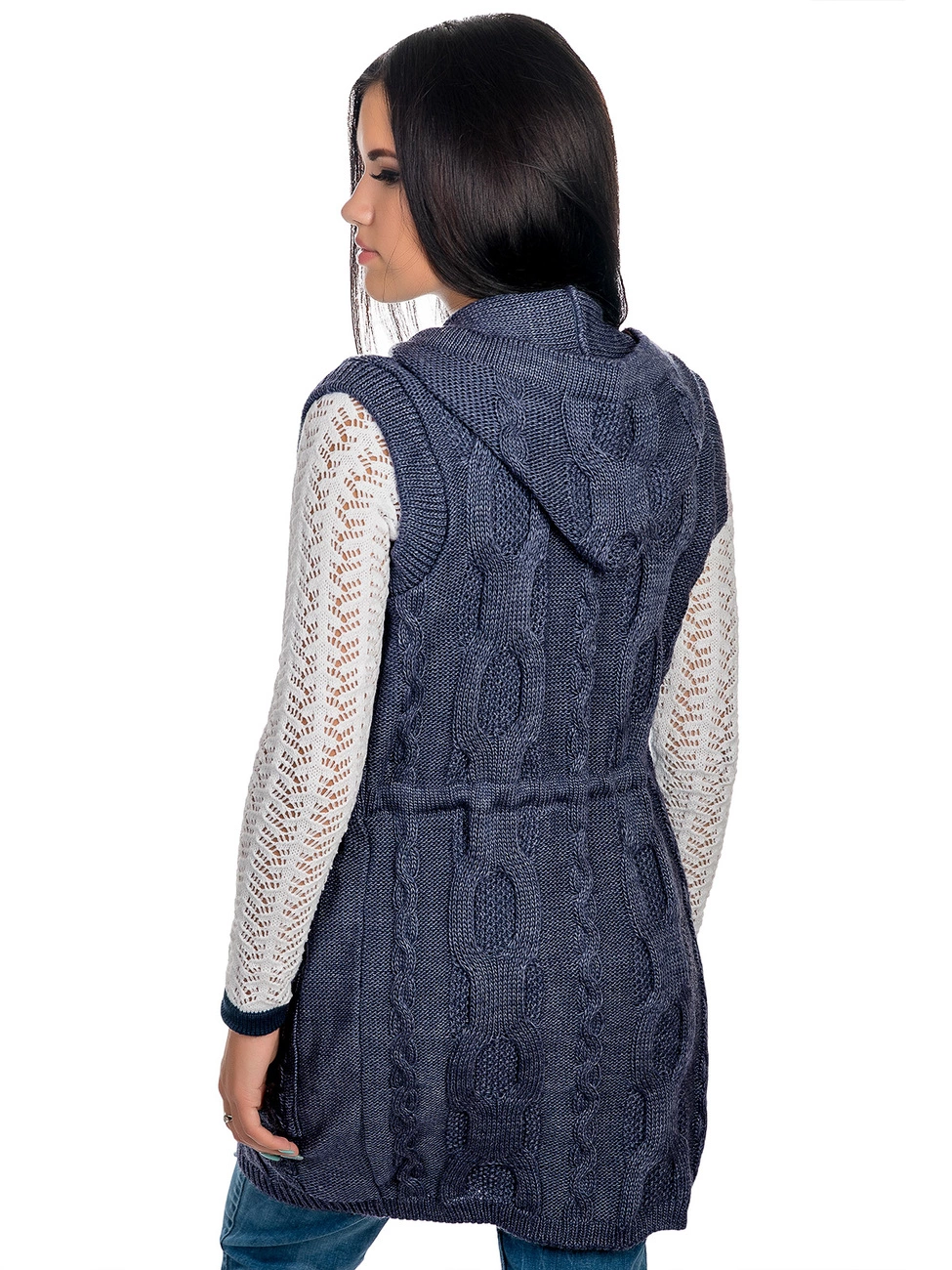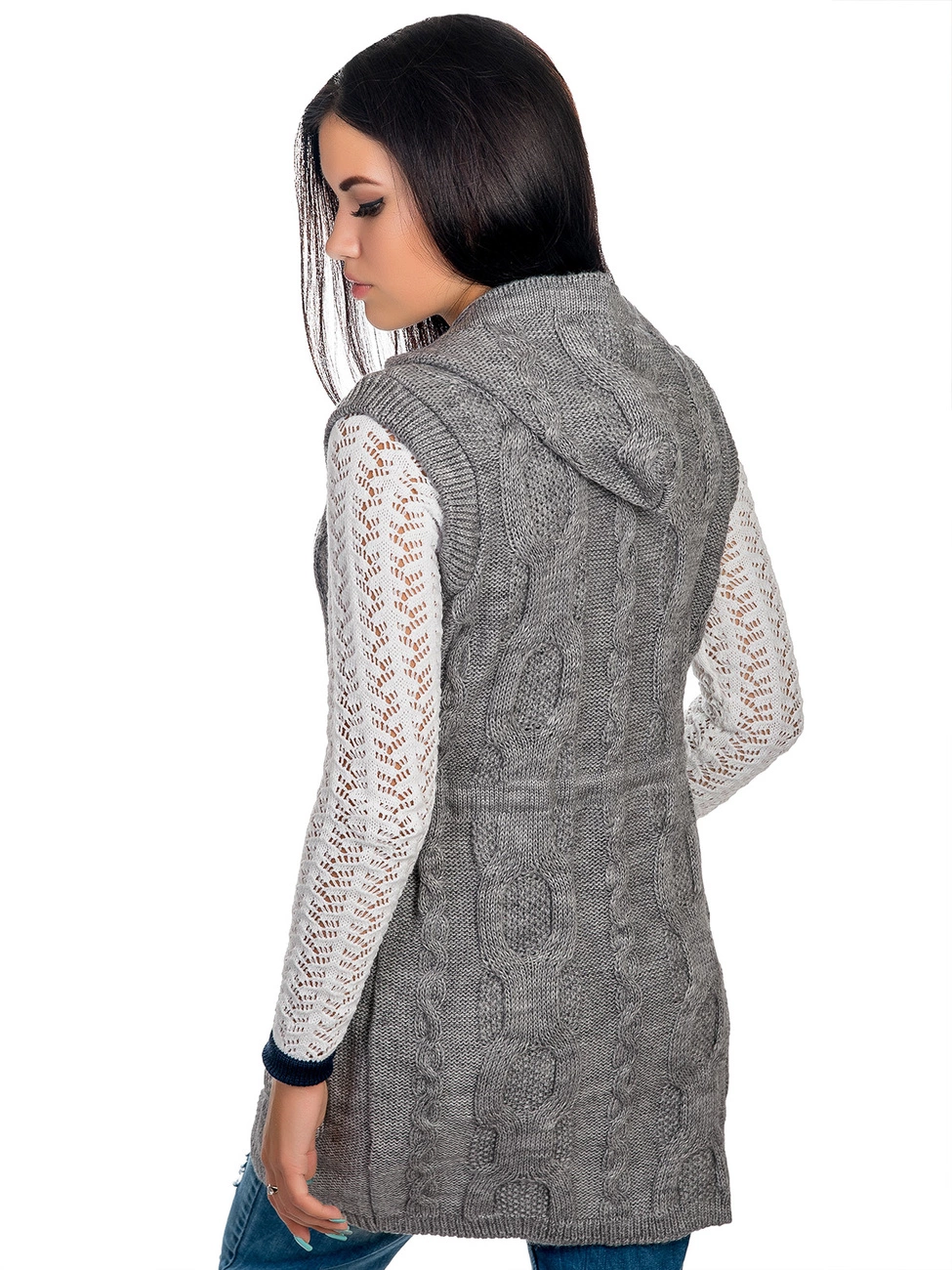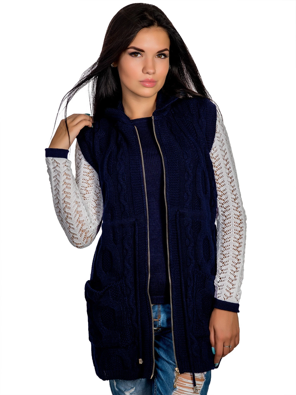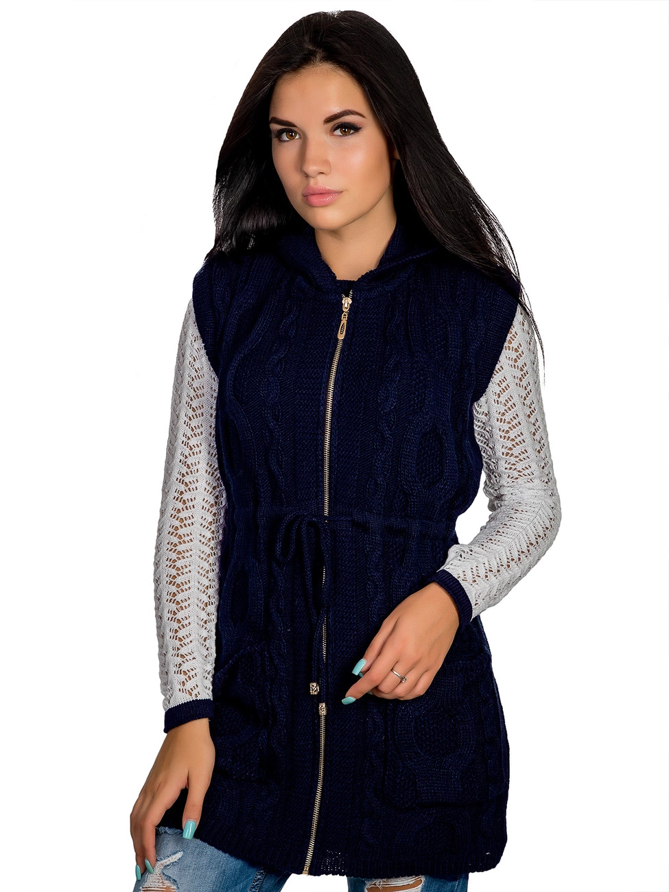 Модный, теплый кардиган без рукавов с карманами и декоративным