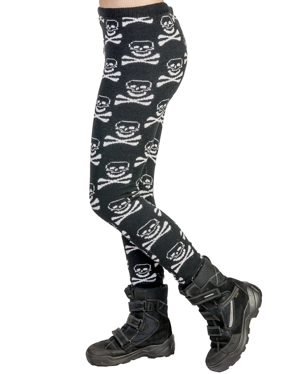 лосины с узором в виде забавных черепушек «веселого Роджера». Эти