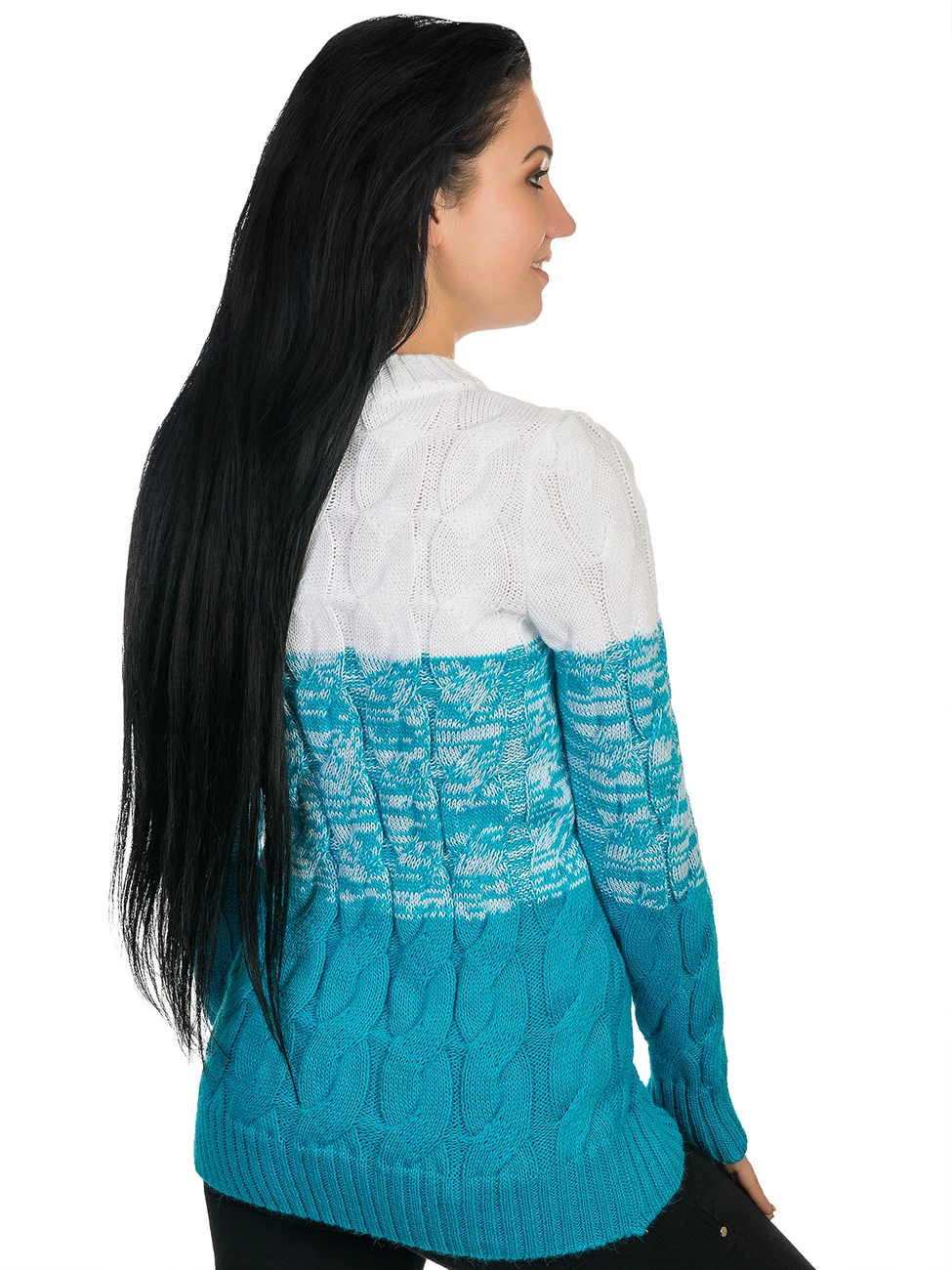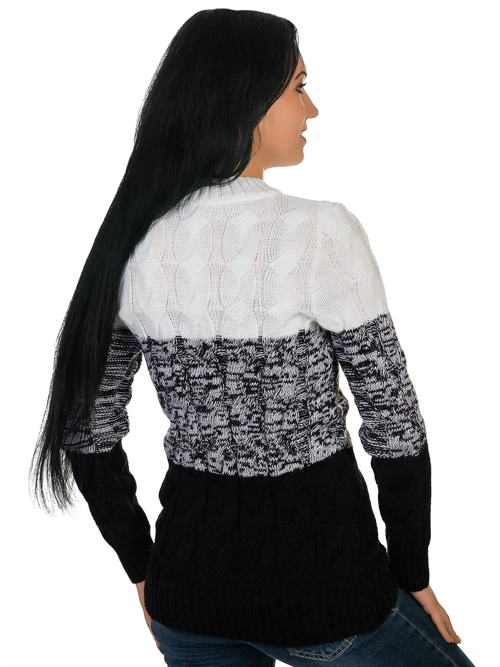 объемными узорами. Круглая горловина, рукава и низ изделия